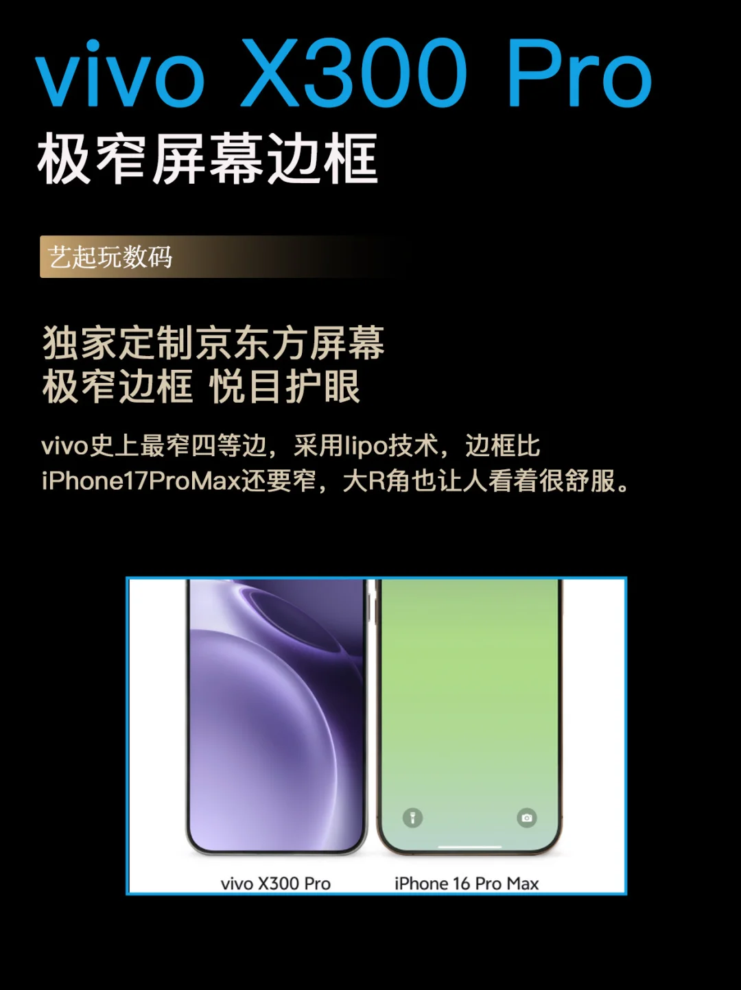 17PM的屏幕好评度一致很高,这次X300 Pro的屏幕也可以来碰一碰,不仅屏幕圆角很舒服,边框也会窄过17PM,重点是它是直屏,再也不用为了贴微曲屏的膜而烦恼了!而且这次是