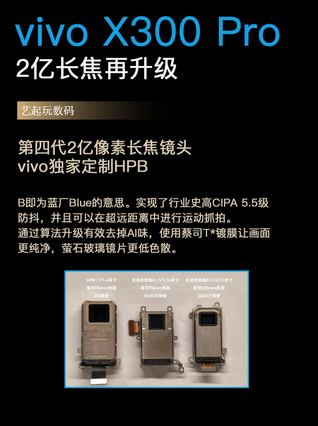 2亿像素的长焦是vivo先运用的,山顶也是VIP的拍照能力已经深入人心了,这次X300Pro用的是第四代2亿长焦,这个长焦有这几个提升