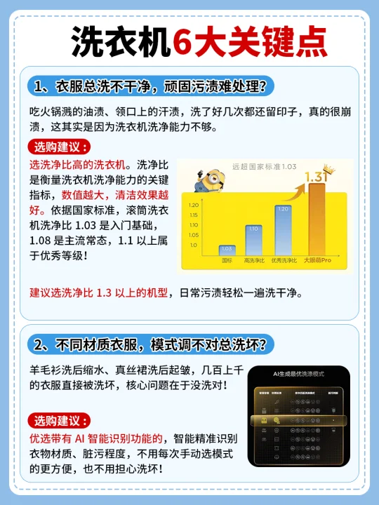 ✅ 洗净比:一定要看能效标上的洗净比,1.03是基础,达到1.3以上就是极致水准。数值越大,越干净!