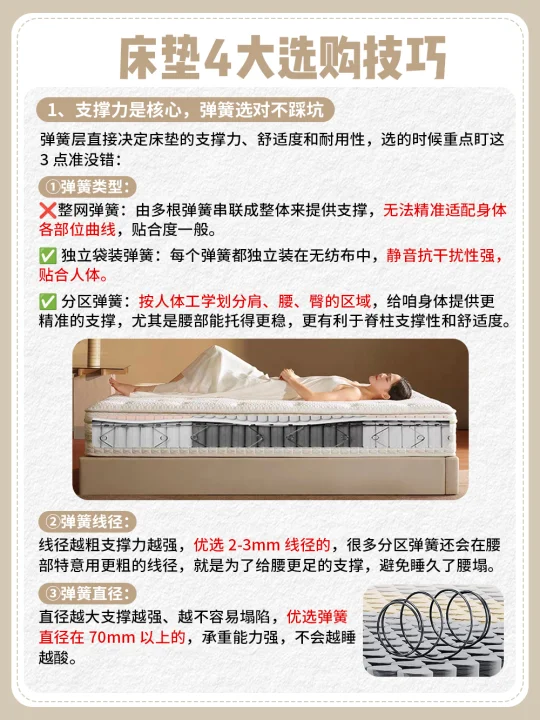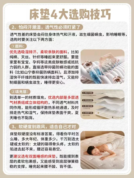 为了让老婆睡得舒服,我查了不少床垫资料,发现得选在腰部那块做专业设计的床垫才行——能托住她的肚子和腰,也能撑我的腰臀。不过选好也是有门道的,[斜眼R]这份床垫选购攻略能帮你避不少坑,大家可直接拿去抄作业啦!