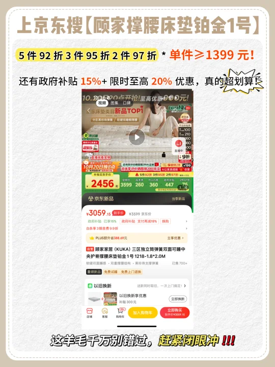 [向右R]Tips:[买爆R]现在上京东还有政府补贴15%+限时至高20%优惠,这羊毛千万别错过呀!