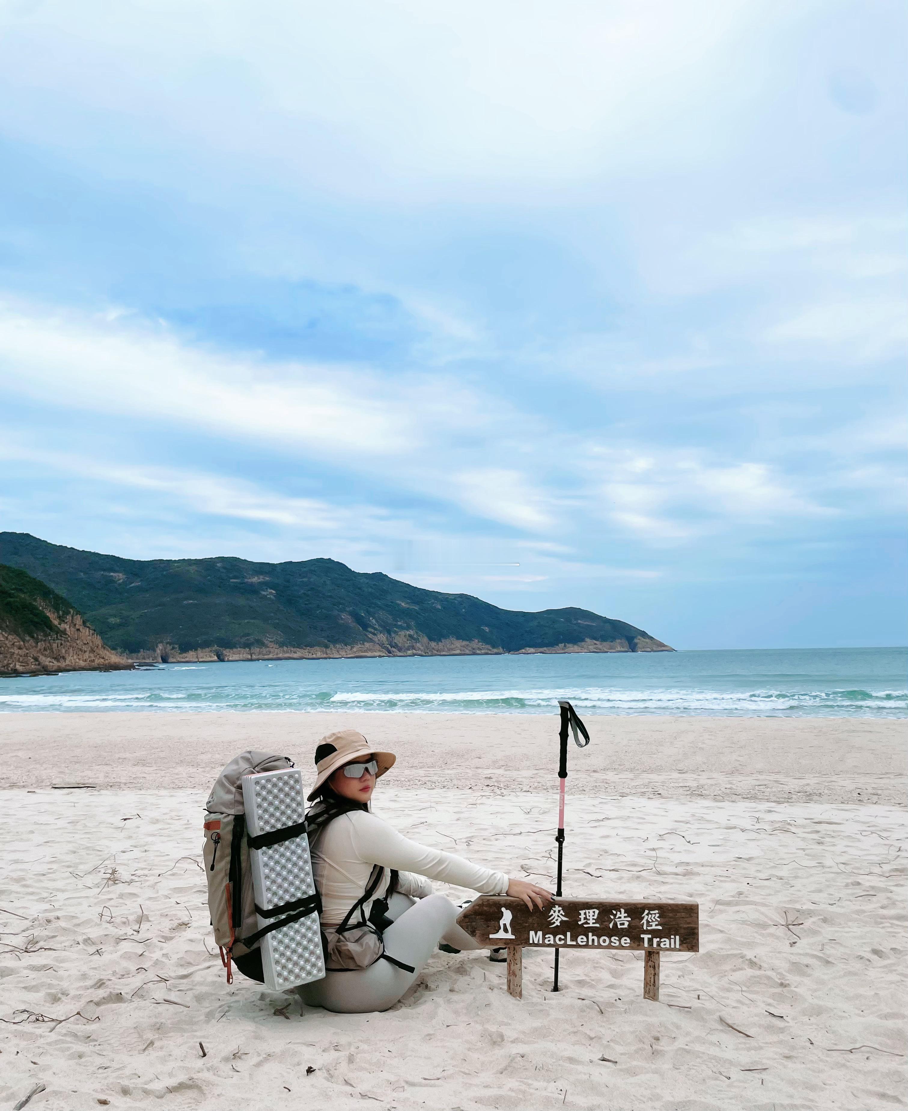 徒步路线:从福田口岸过关,打车🚖万宜水库东坝下车,费用大概不到400港币,这里有洗手间,直接出发往破边州,路比较不好走,重装的我们直接听从一个路人大哥建议,把包直接先放到路边的一个地方,徒步前往,大概一个多小时就可以到拍照打卡点,原路返回哦,就刚好是麦理浩径第二段的起点,然后就是漫长的爬山过程,先到浪茄湾,这里也可以露营,风景也很美,继续往前走就到西湾亭,这里有巴士也可以打车,有些人没继续走的话会选择从这里结束返程,然后继续往前就到西湾海滩了,这里有帐篷可以租也有便利店,也可以洗澡。