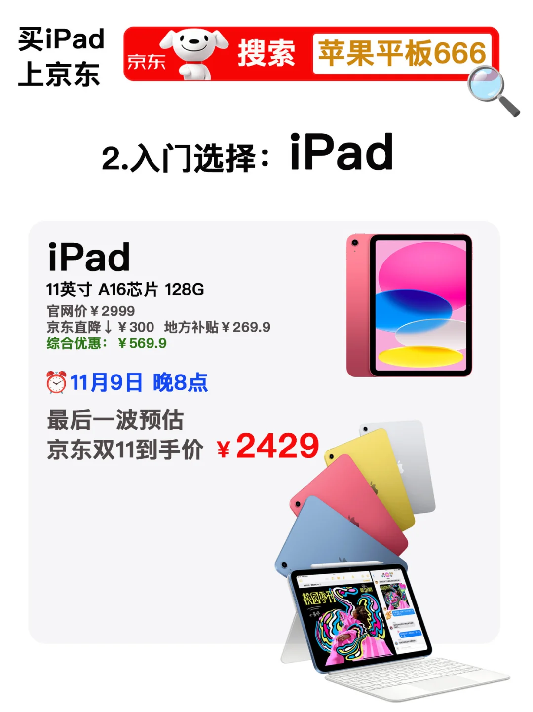 2️⃣ iPad 128G💰原价2999,✅最后一波预计到手💰2429