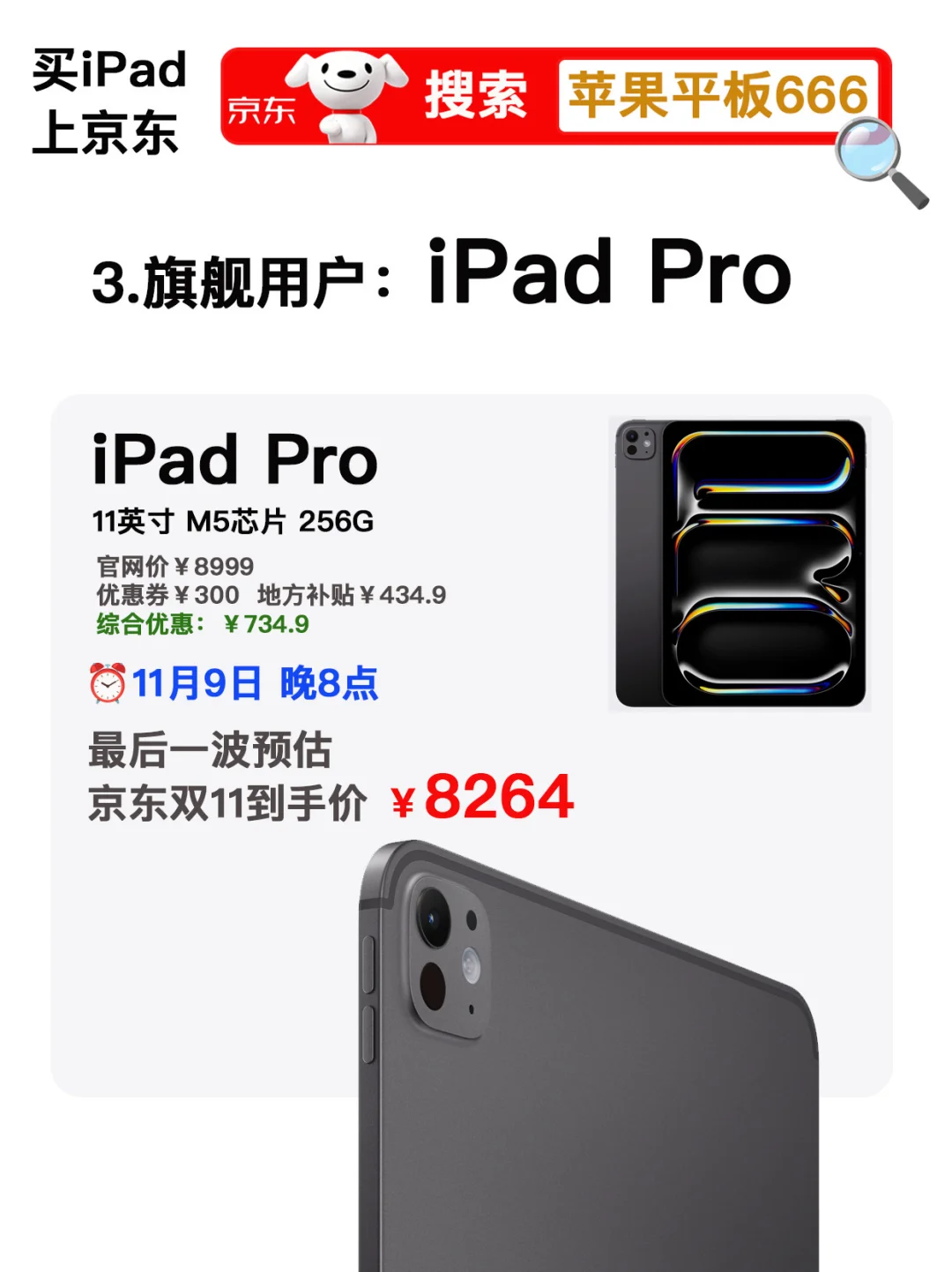 3️⃣ iPad Pro 256G 💰原价8999,✅最后一波预计到手💰8264