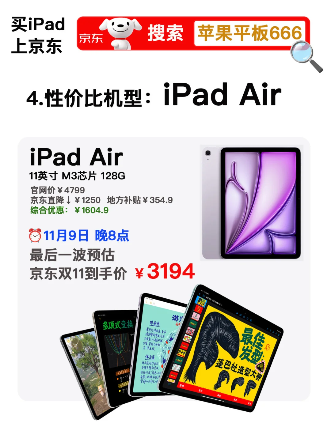 4️⃣ iPad Air 128G 💰原价4799,✅最后一波预计到手💰3194