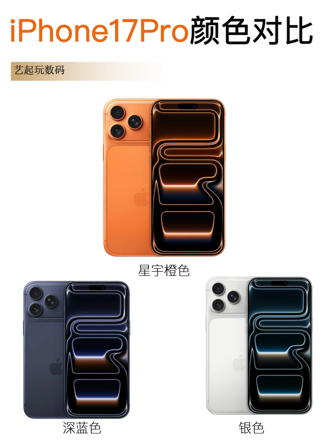 iPhone17Pro: 星宇橙、深蓝色、银色