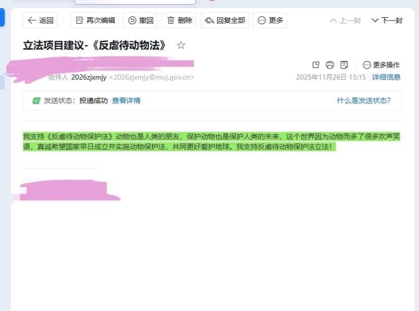 今天最后一天!!!快来和我一起发送建议邮件!众人拾柴火焰高!支持反虐待动物立法!!!!!!