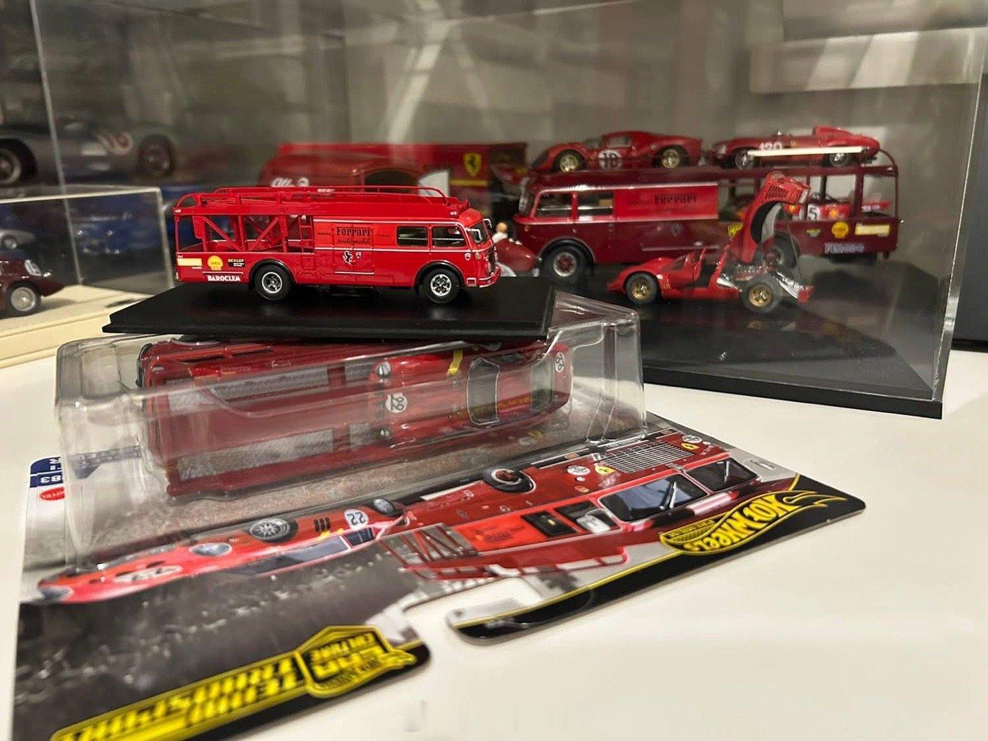 风火轮Hot Wheels的法拉利运输车Team Transport & 250 GTO套装终于拿到手了!这货现在炙手可热,还好朋友帮我定了两只,不然能在野外碰到的几率基本为负数。作为玩具的考量,Mattel算是十分用心了,细节上很到位,份量也很实落。把它摆到1/43的Exoto运输车和现今极为稀有的1/87 Redline运输车模型前搭配拍了组照片,这个安静的夜晚度过的非常满足!