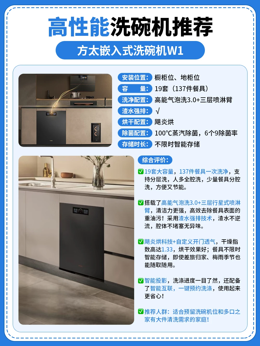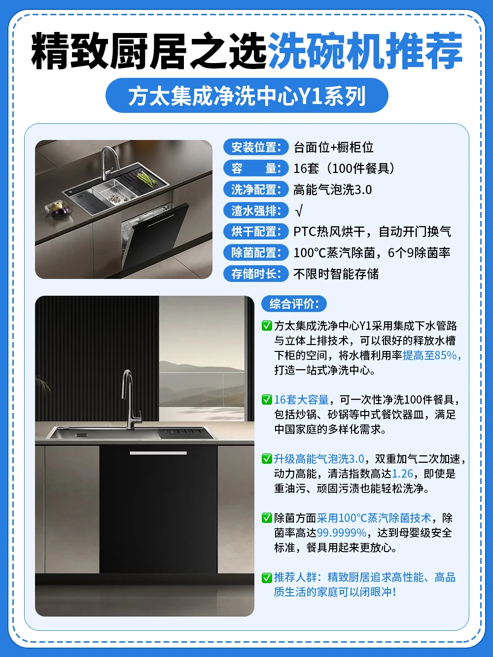 ✔️适合精致厨居追求高性能、高品质生活的家庭