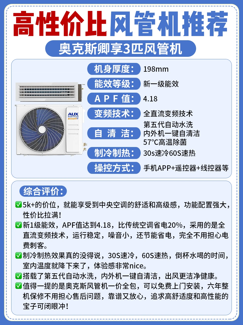 [斜眼R]做足了功课,我最终选择了✨奥克斯卿享3匹风管机, 5k+的价位,就能享受到中央空调的舒适,功能配置强大,性价比拉满‼️