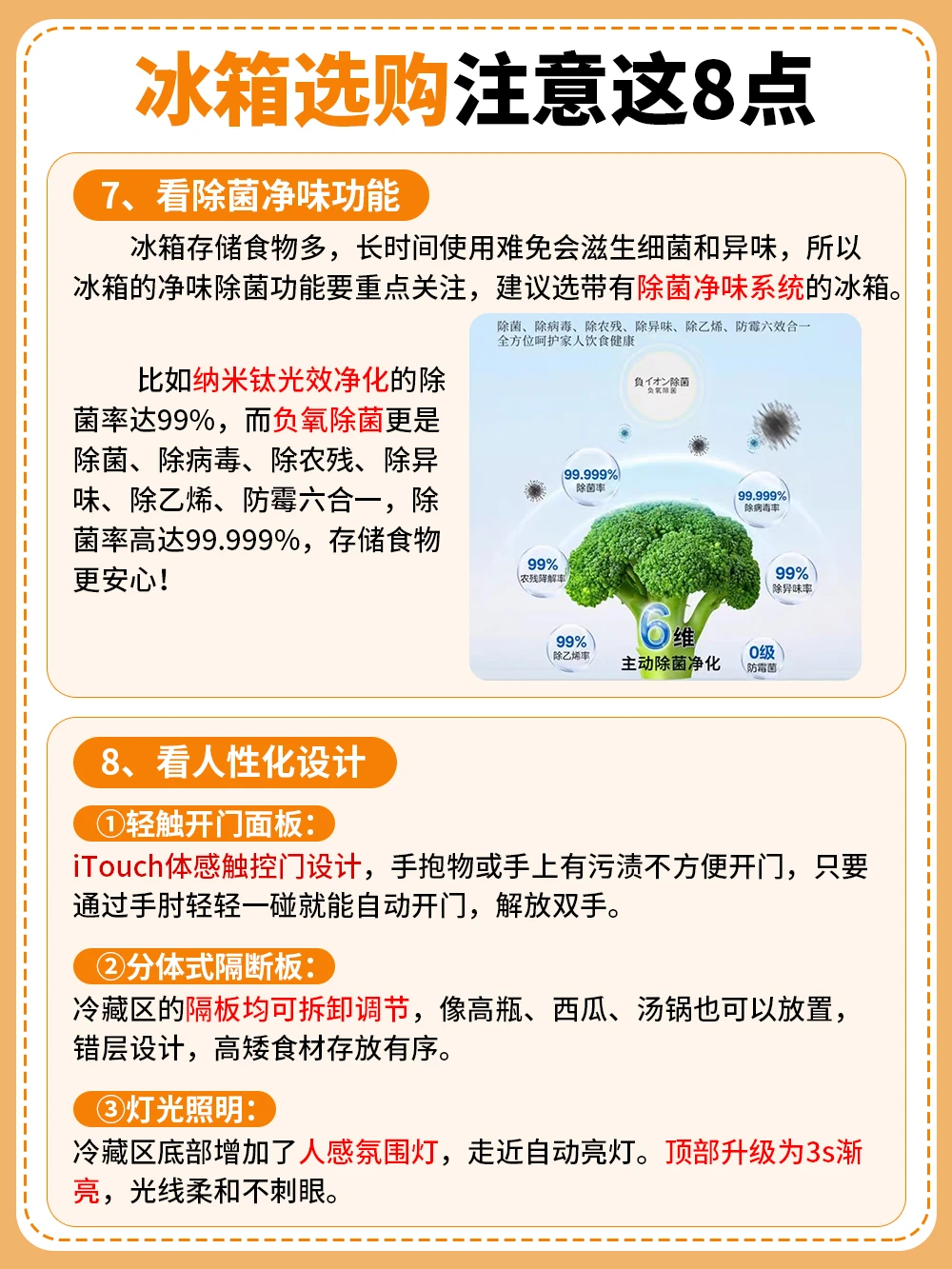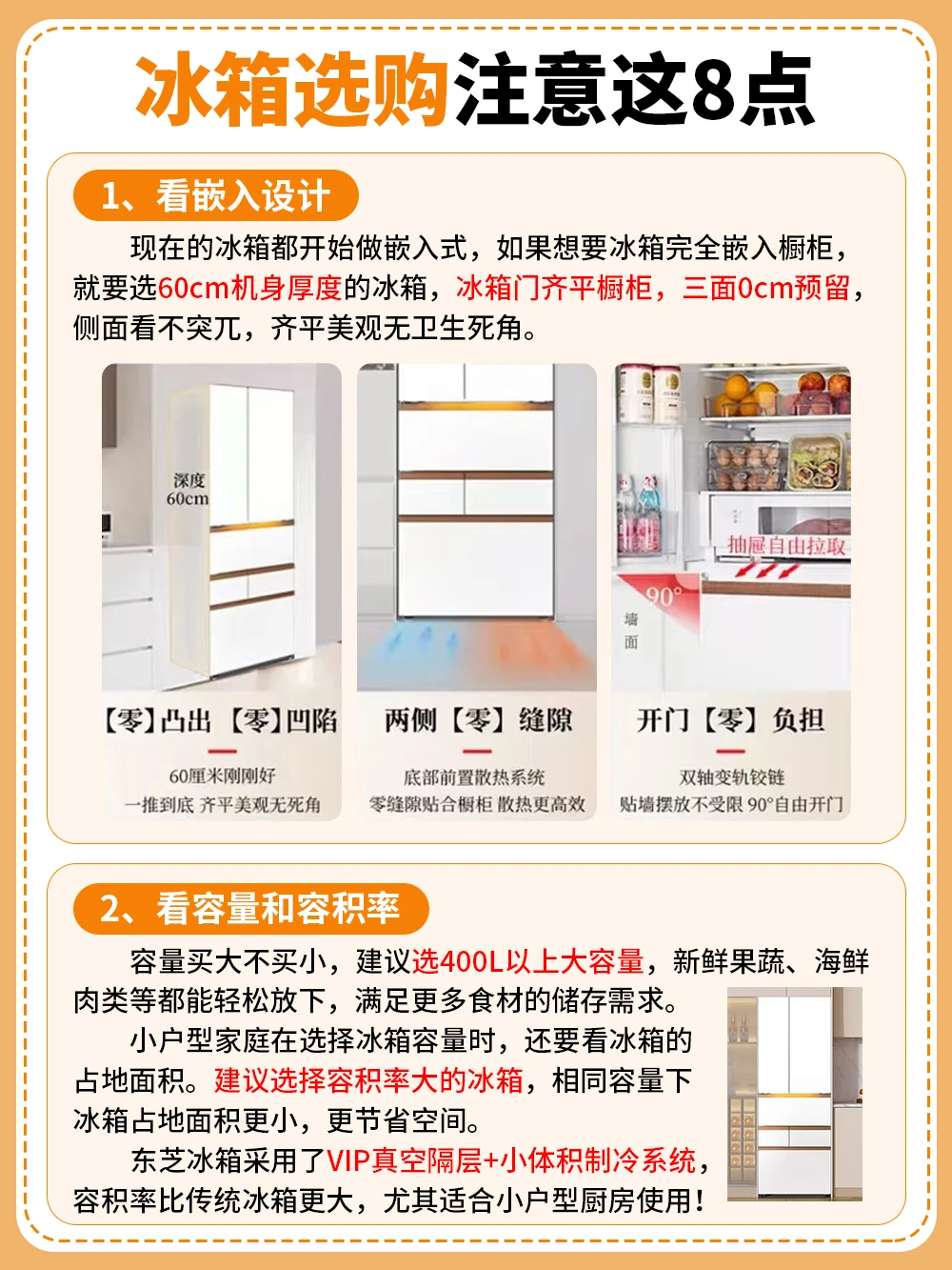 这两款延续了高颜值多门体日式冰箱,小体积大容量,在占比面积不变的情况下升级全嵌,宽幅变温的60cm深可嵌入的多门冰箱,容积率更是达到65.10%,小户型的心头好;富士白肤感玻璃面板搭配樱桃木纹把手,设计感十足,60分钟急速制冰升级UV杀菌+2分钟自清洗,制冰更洁净;星级料理鲜科技守护食材健康更安心。果蔬区升级四档变温抽屉,雾化保鲜3.0/冰鲜/软冷冻/冷冻随心调节,满足不同食材的存储需求!