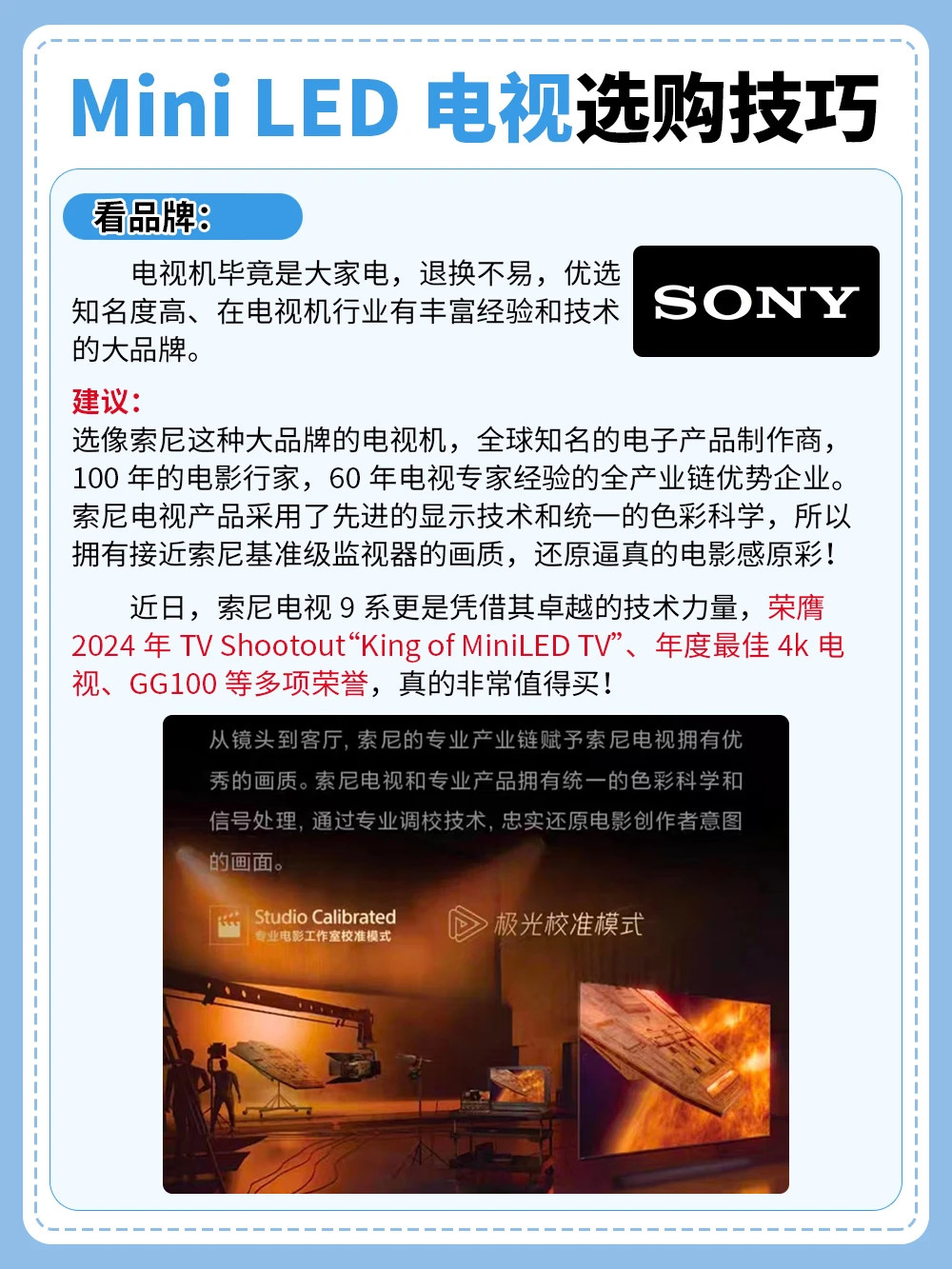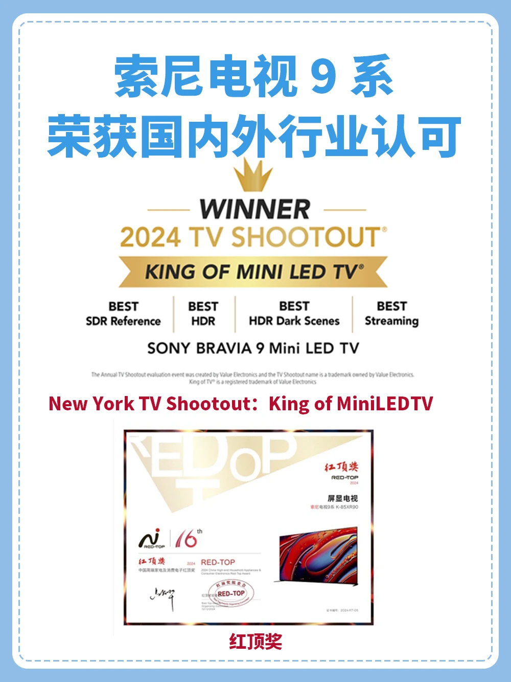近日,索尼电视9系更是凭借其卓越的技术力量,荣膺2024年TV Shootout“King of Mini LED TV”、年度最佳4k电视、GG100等多项荣誉,非常值得买!