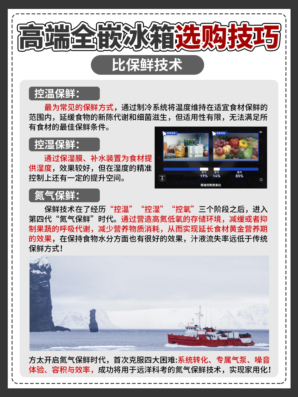 保鲜能力很强!原创的远洋级氮气保鲜科技,主动制氮降氧,延长食材的黄金营养期,果蔬放一周口感依然新鲜如初。还有原鲜解冻技术,快速均匀解冻的同时还唤醒食材原鲜营养。