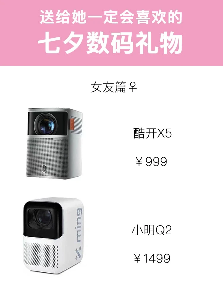 适合送给现在还没有住在一起的情侣,如果你的女友喜欢追剧,手机屏幕太小,平板容易砸脸,智能投影仪就是一个很好的选择,投在天花板上就能躺着追剧了,还支持手机投屏,视频的时候,可以将你的画面投上去,你的脸也就变大N倍…