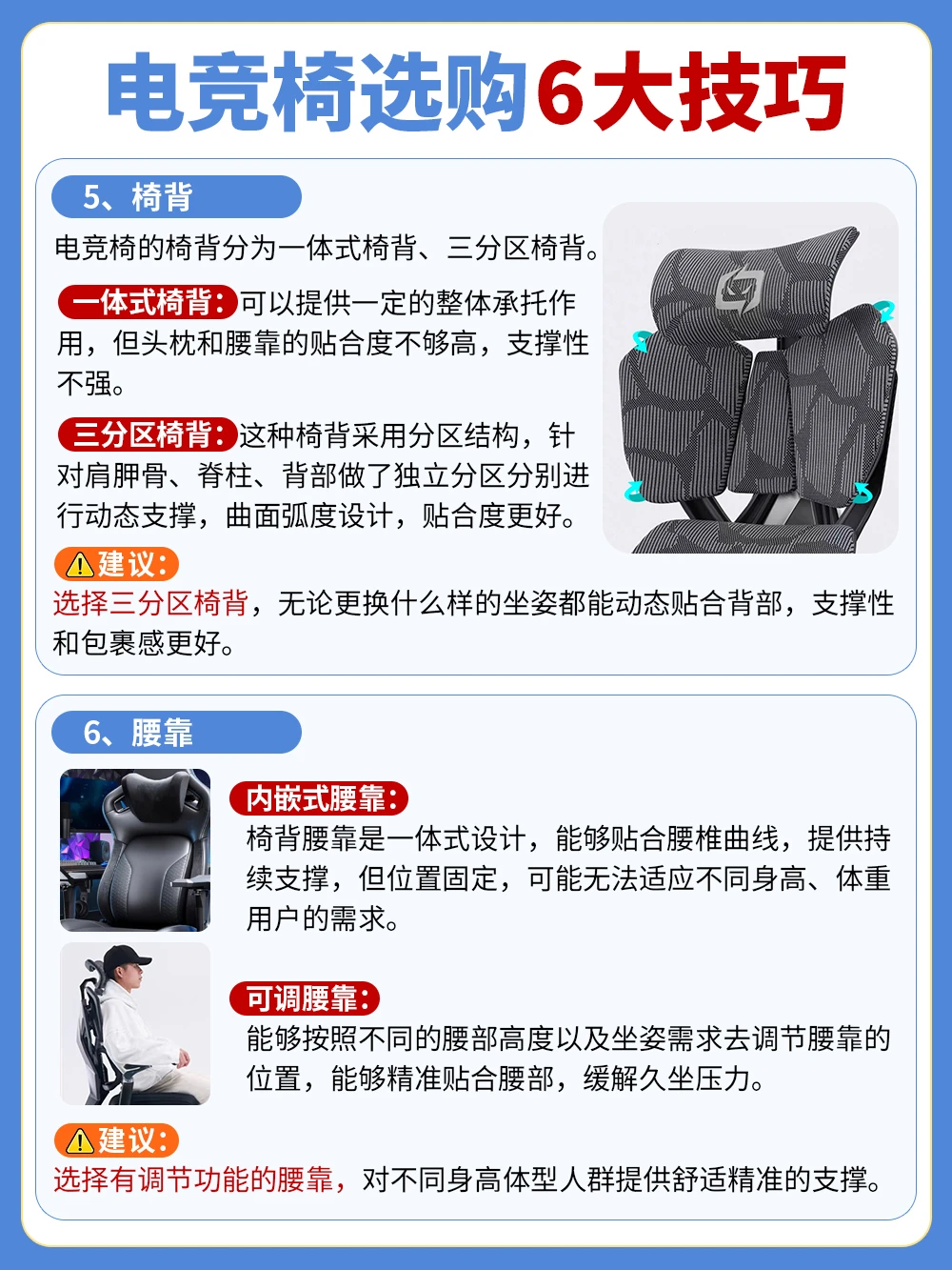 建议选择三分区椅背,针对肩骨、脊柱、背部做了独立分区分别进行动态支撑,自动跟随双背摆动,贴合度更好。