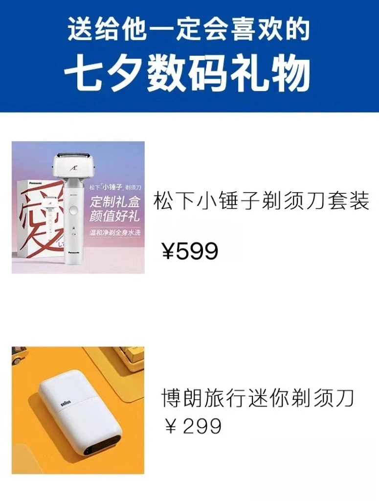 这个也是男生必备,品牌很多,价格也很多,还是推荐两个不同价位,适合在家中或者经常出差的男生使用的,买这个不能说让他绝对的兴奋,但一定会觉得你很贴心和细心。