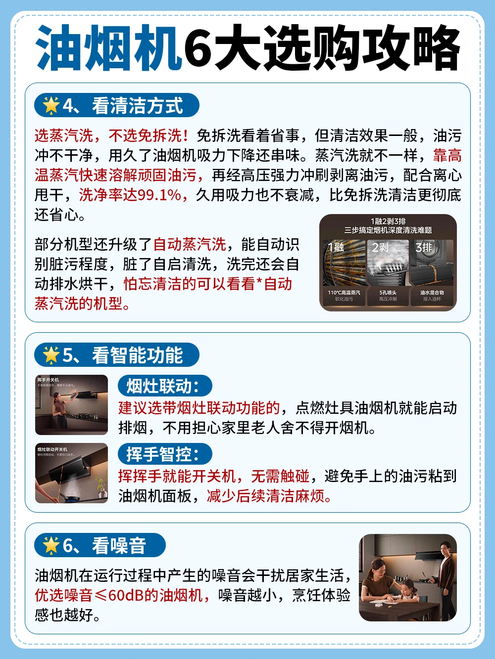 优选噪音≤60dB的油烟机,运行更安静,提升烹饪体验感。