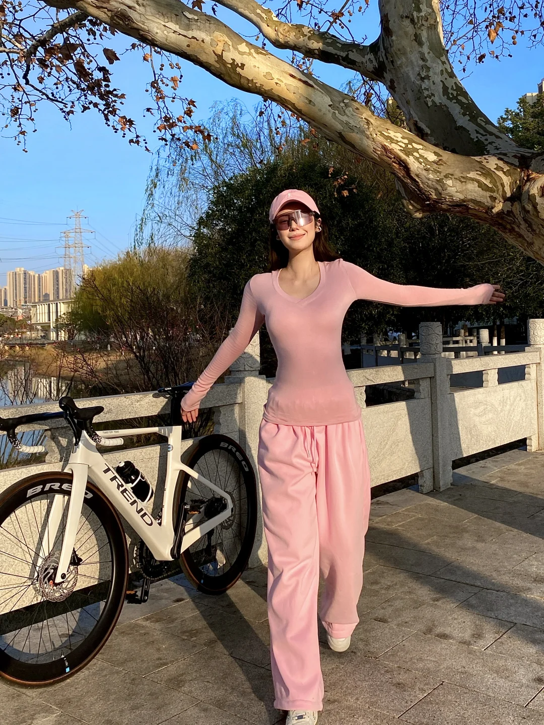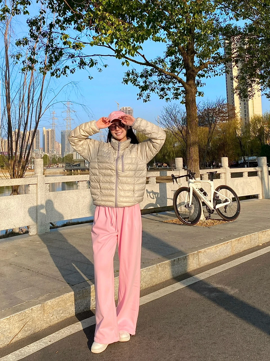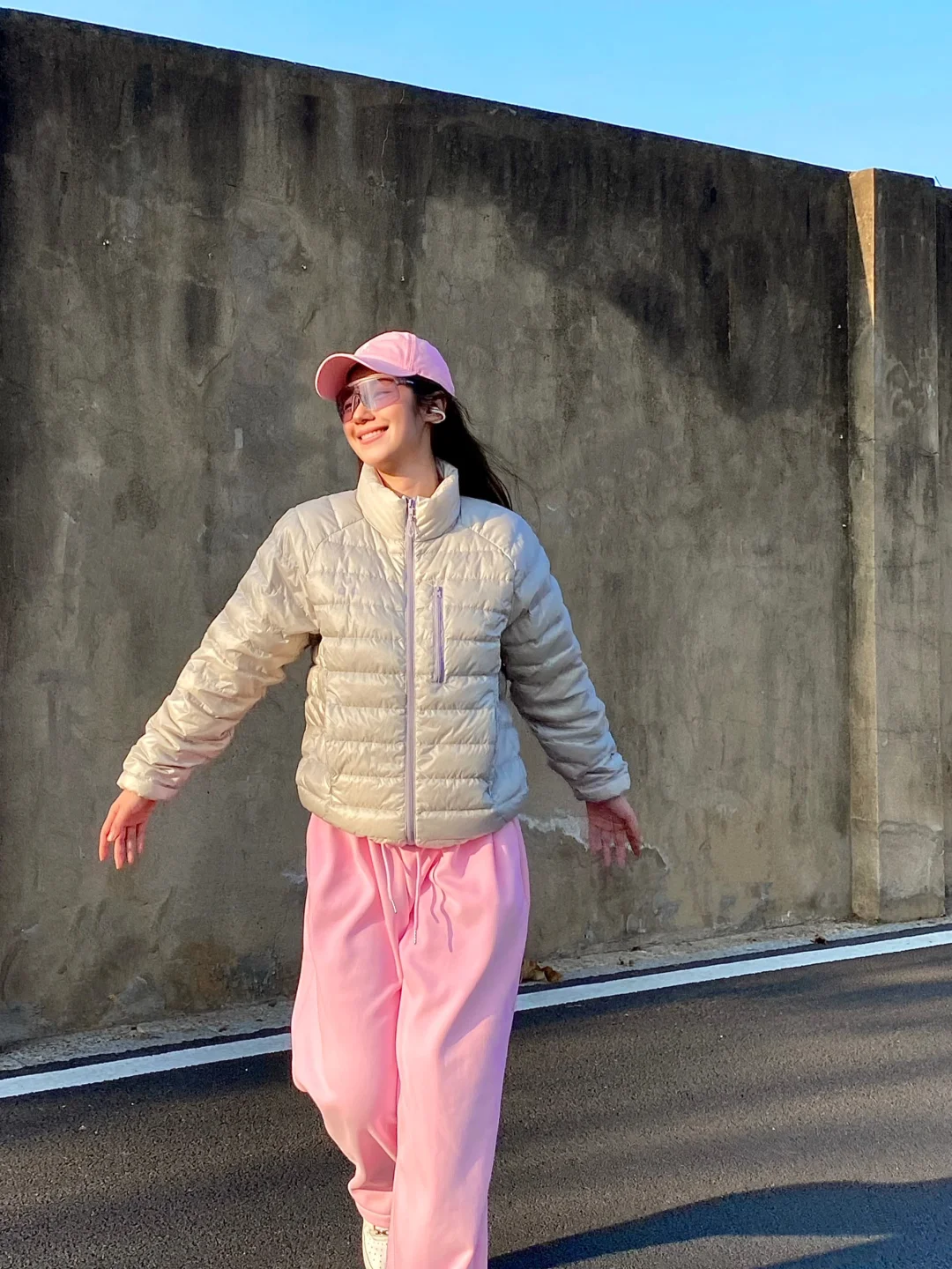 今天搭了一套粉色系,米灰色羽绒和粉色运动裤撞色好温柔,软乎乎的面料贴身穿也舒服,内搭同色系,粉色谁不爱显嫩,拍照还贼出片📸