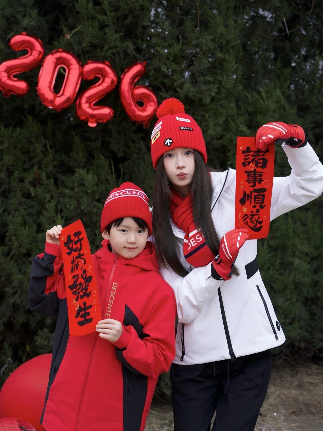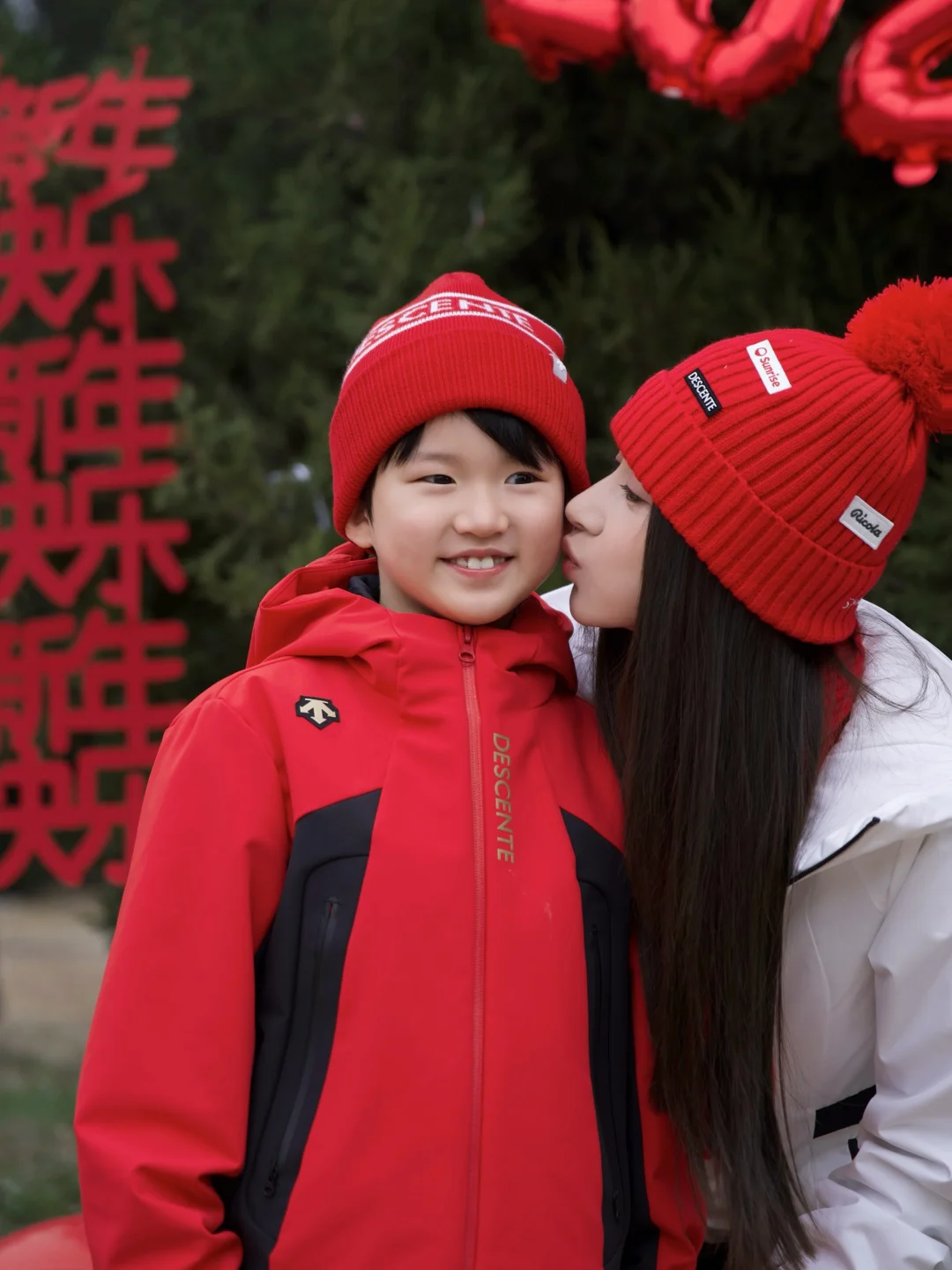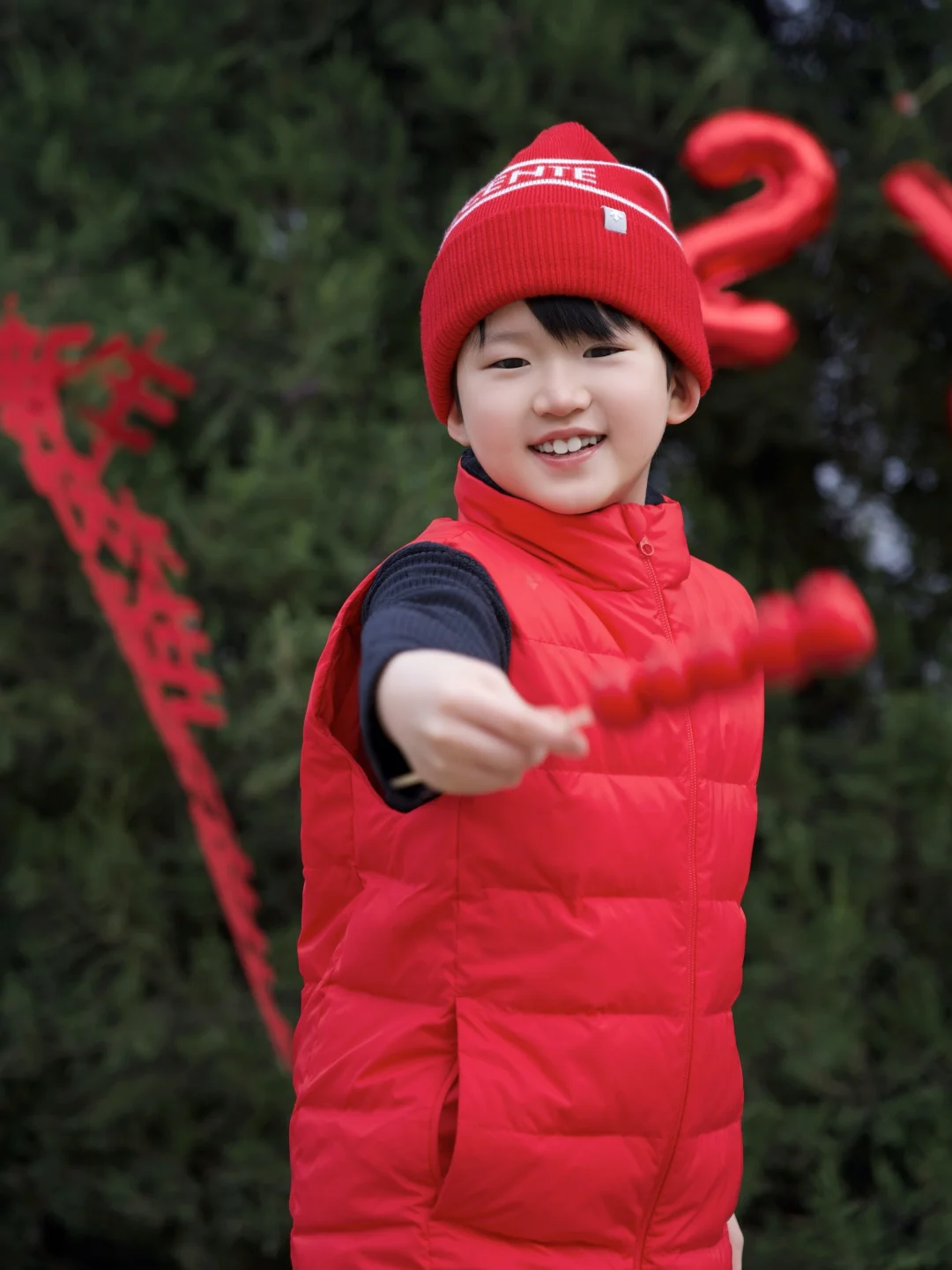 配个同系列红帽子,刚好有新年氛围