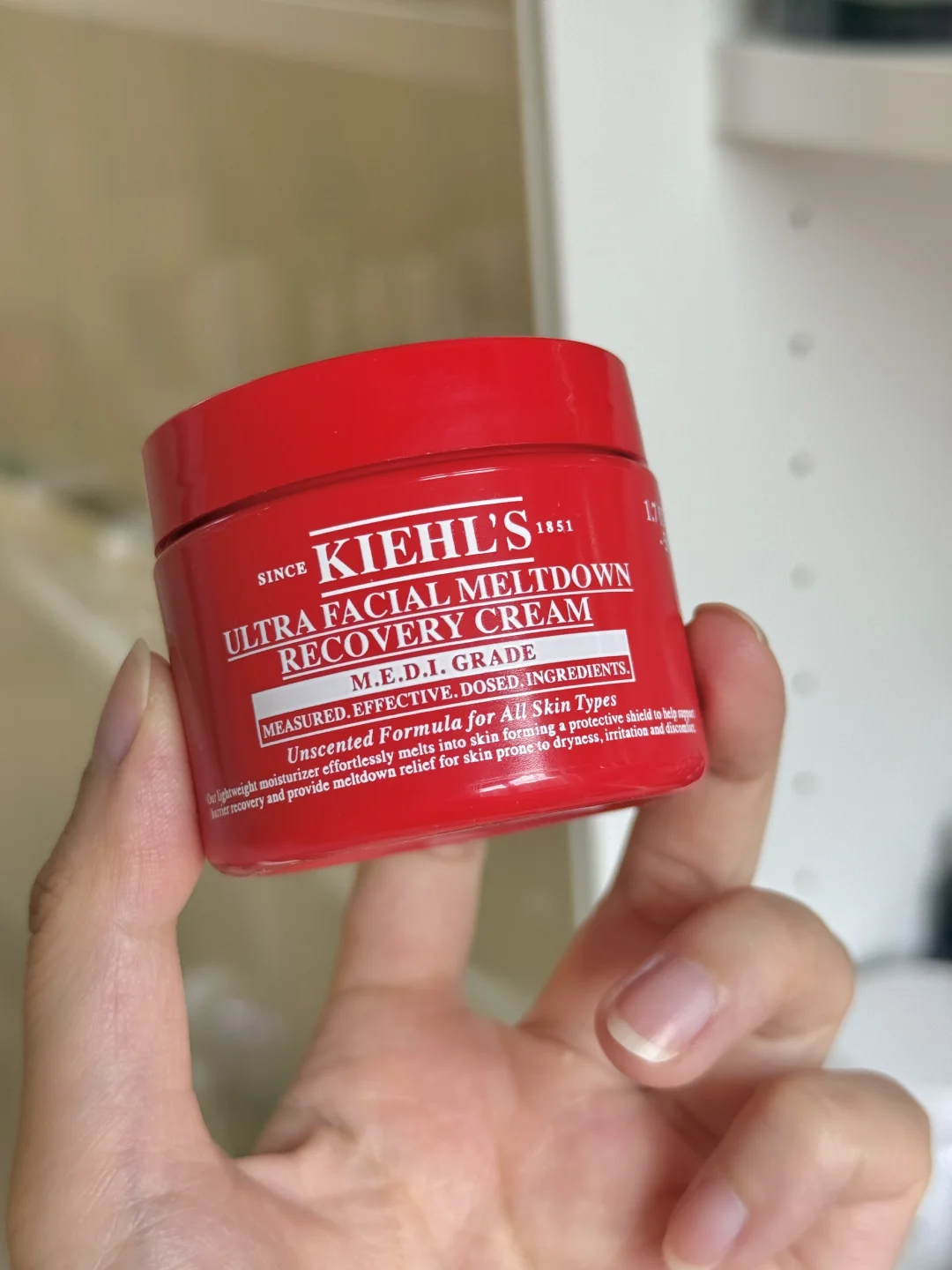 3.停用各种强功效产品:特别是含维A酸、水杨酸等剥脱类成分产品。护肤品要精简,只留“刚需款”。一罐能短期急救&长期维稳的面霜足够,要确保爆发期能压制不适、修护期避免反复,不知道怎么挑就选大厂的有保障。像我很爱用的科颜氏新品急护霜 ,它就是高保湿霜的敏肌专用版。两组核心成分搭配起来算是满编团队了,燕麦精粹+β葡聚糖像一辆急救车,迅速把🔥因子和红热因子抬走,泛红发烫时涂就像吃了颗薄荷糖,脸皮温度瞬间往下掉,再由锌+红没药醇+B5负责后续收尾,慢慢修护受损屏障,改善干燥爆皮,皮肤越养越稳变得更耐造,耐受阈值提高了敏感也不会反复纠缠。这种短期急救+长期修护的打法,能让敏皮肉眼可见逐渐健康稳定下来