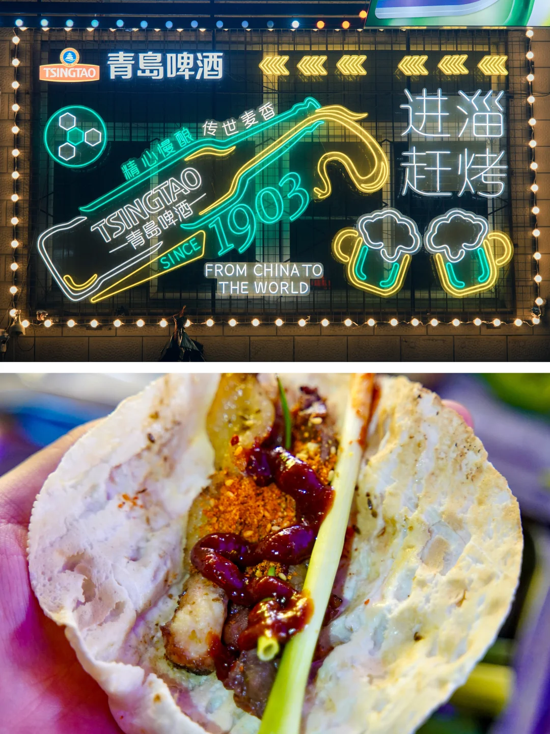 😋美食:景区有小吃街,淄博烧烤、锅盔、琉璃爆米花等都有,边走边吃,逛灯更开心😁