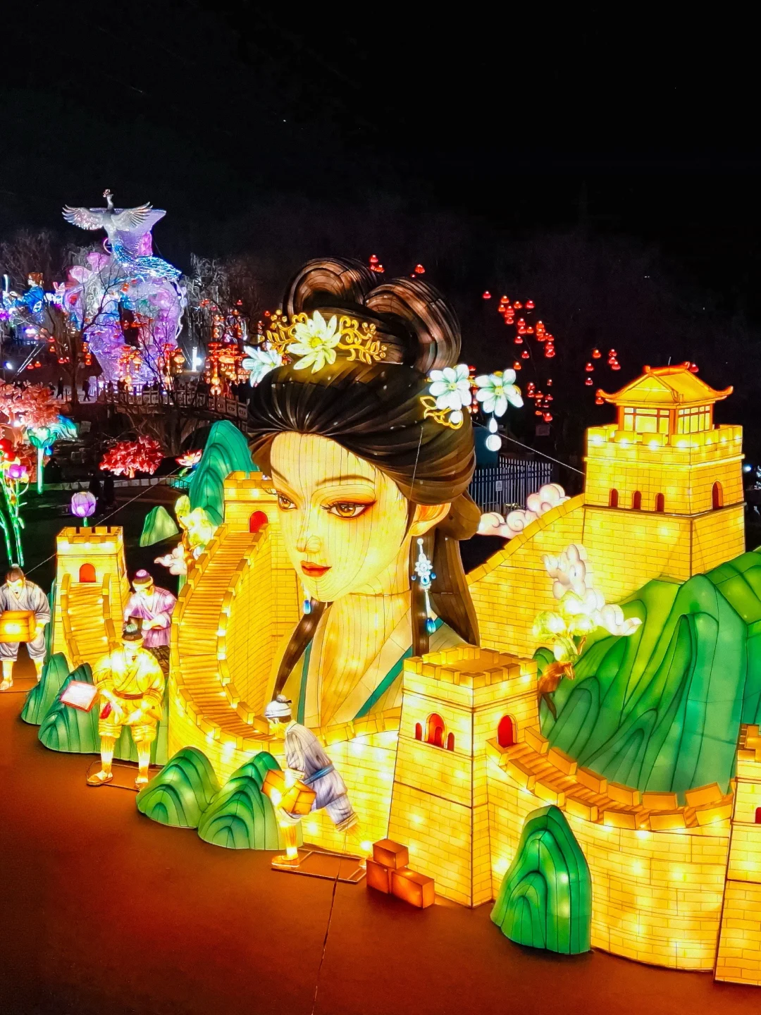 ✅还有东方神话、灵山之巅、变色生命树、粉色的琉璃凤瓶、福娃闹新春等特色灯组,年味十足