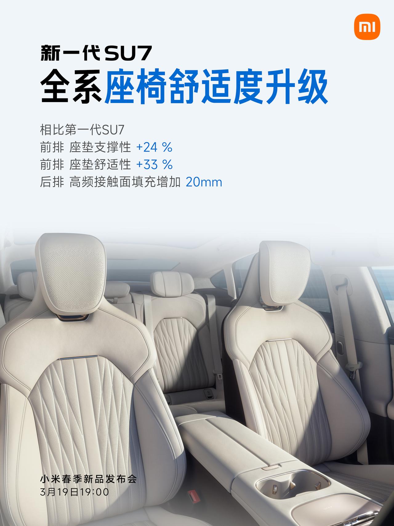 12张图看懂新一代SU7「全系标配大满贯」,安全、驾控、智能体验和豪华质感,全面升级,你期待的、你关心的,全系标配。更多惊喜,3月19日,晚7点见。