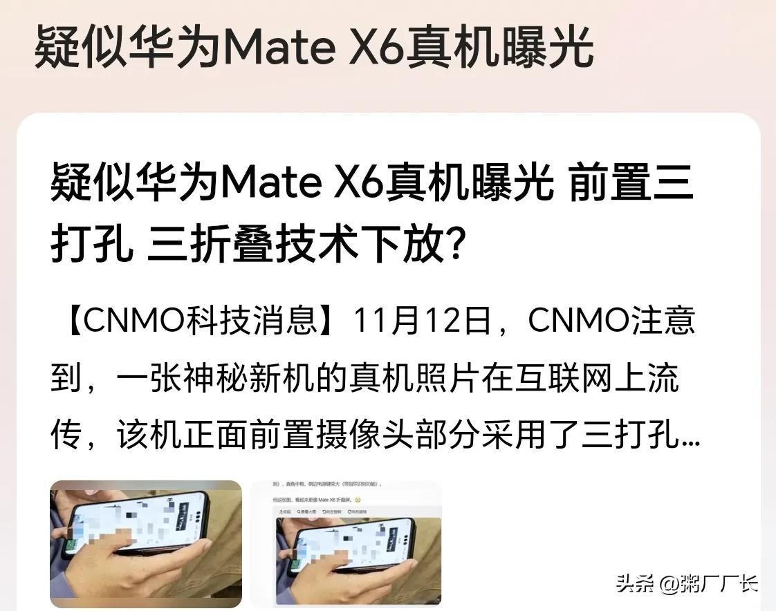 前几天都说这张谍照是mate70,今天又说是发大折叠mate x6[捂脸][捂脸],我倒觉得是后者的可能性居多,毕竟下面那第二层机身还是挺明显的啊。
