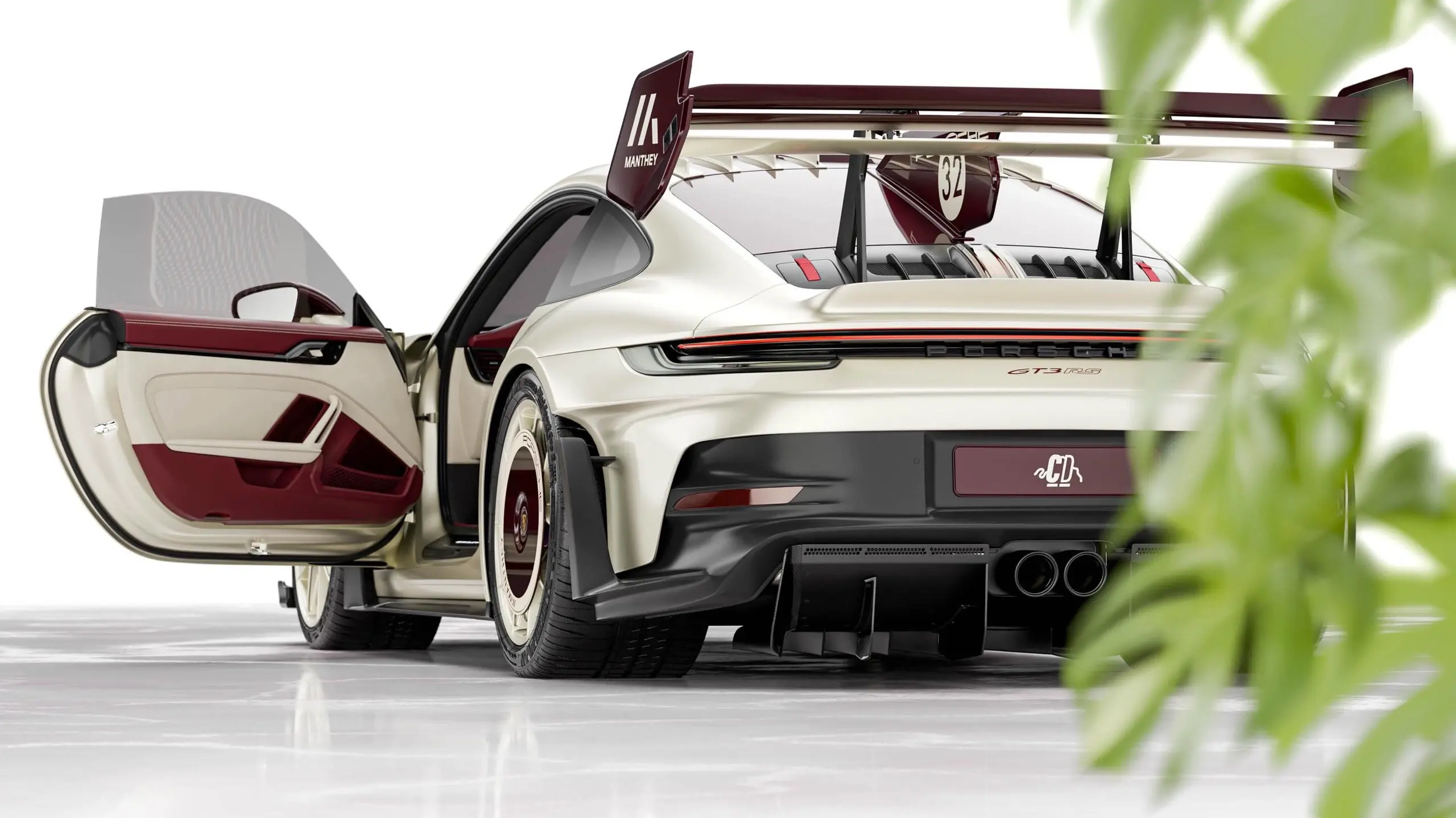 现在越来越多的高端车的定制用户选择了第三方设计公司来丰富自己的定制化程度 比如这一台保时捷992.1 911gt3rsmr 车主就先选择了第三方carrera design 作为渲染设计的一把手 这个渲染效果比实车看起来都要棒 这也是保时捷、mantheyracing做不到的 他们的渲染非常的工业化 做不出来这种的角度,色彩还原以及亮度饱和度 这台车的实车视频已经发过了在往期视频