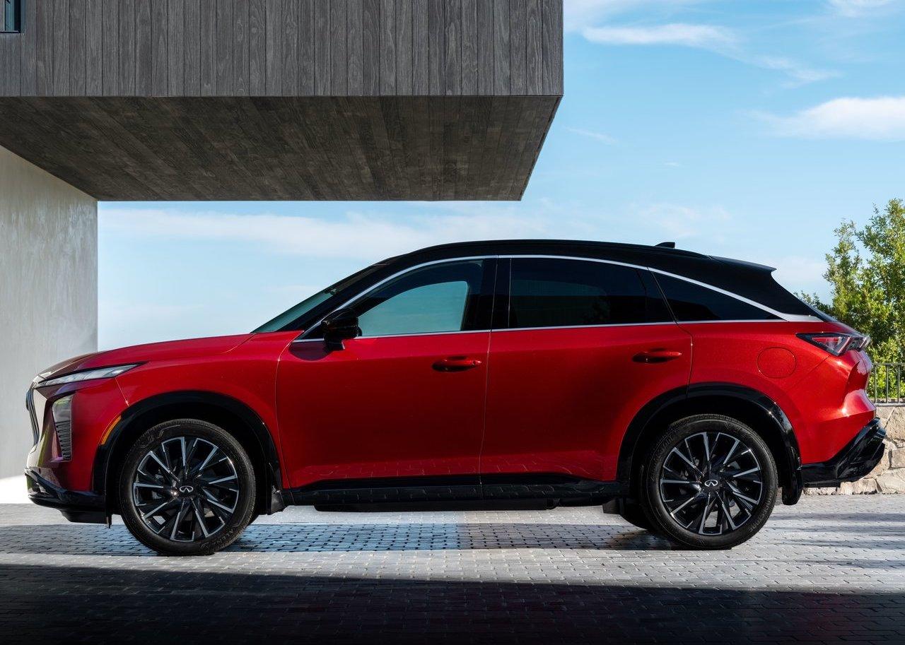 说真的,看完全新QX65的官图,不是那种一眼惊艳到不行,但也绝对不算丑,就挺英菲尼迪的。首先,这个侧面我是真的觉得不错。当年FX那种大溜背的灵魂总算是回来了,线条从B柱往后滑得特别干脆、特别舒展,没有那种臃肿感。高腰线加上大轮毂,一低趴,那股优雅又带点狠劲的劲儿就出来了,这是整车最好看的角度,没毛病。