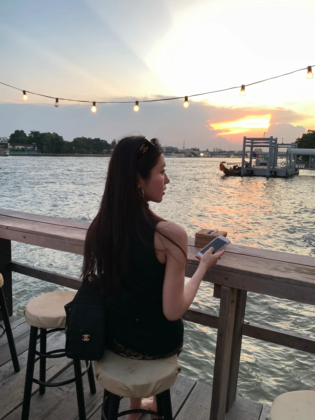 傍晚在湄南河边看日落 很治愈很chill