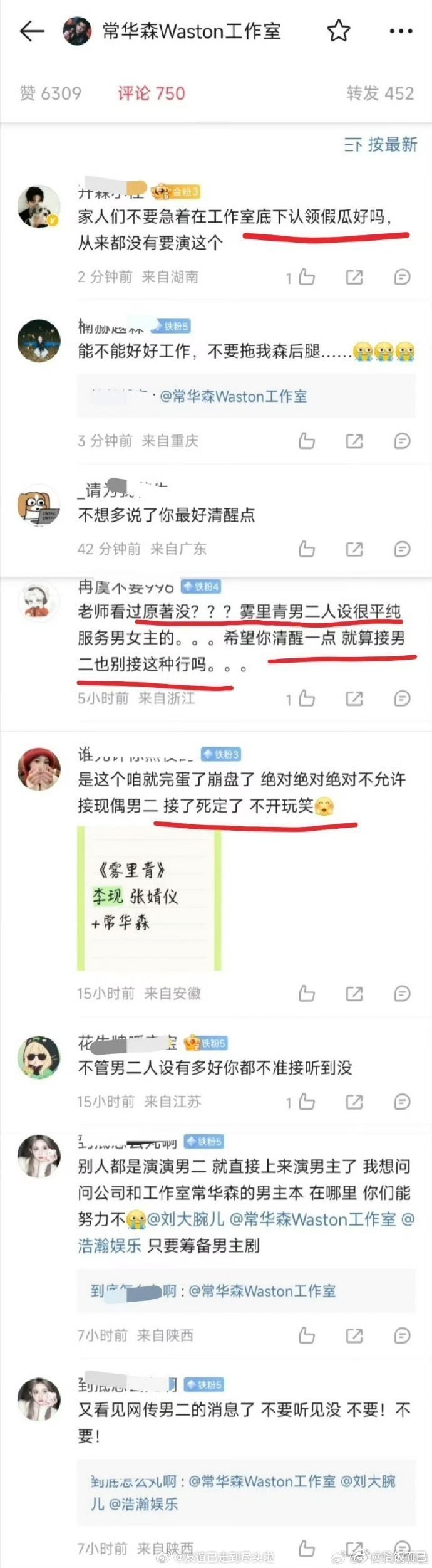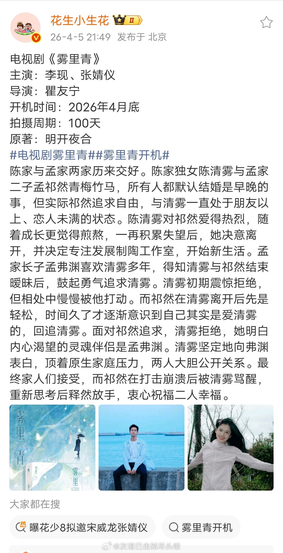 瓜顶删掉了辟谣常华森出演《雾里青》男二的帖子,常华森4月行程表写了新剧筹备,跟雾里青4月底这个开机时间对上了。李现是现偶剧之光,张婧仪热门95花,男二这个角色是男主的弟弟,女主爱而不得的青梅竹马,这种1v2雄竞剧,对常华森来说算好饼吧。粉丝永拒现偶男二有点不太妥当,以常华森目前的咖位、人气、流量,雾里青可能是目前手里最好的资源了。。。