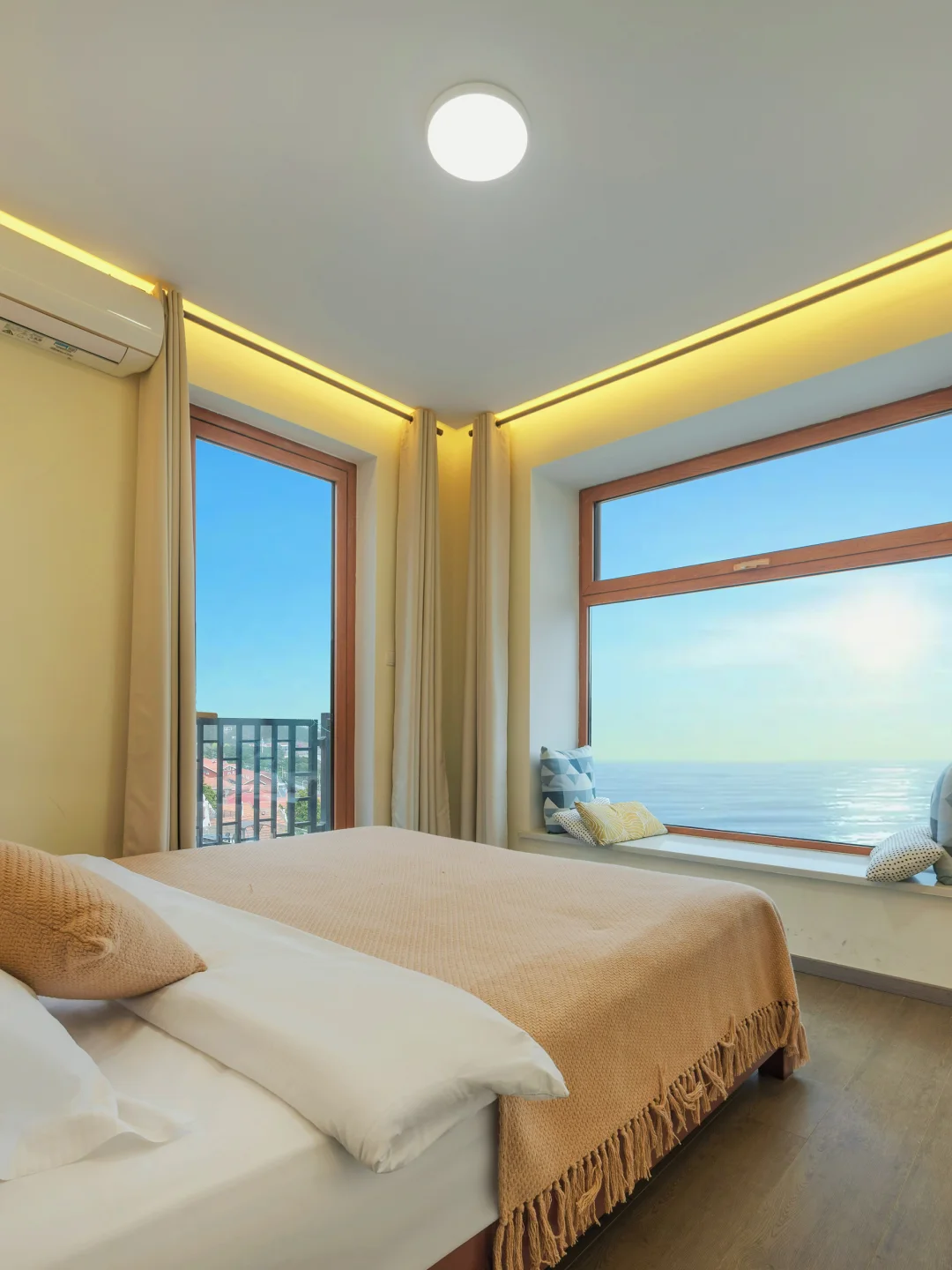 房型超全:大床房、亲子套房、海景房、汤池房…选的亲子套房,孩子一进门就尖叫!可以从房间看海,躺着等日出太浪漫了🌅