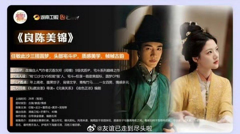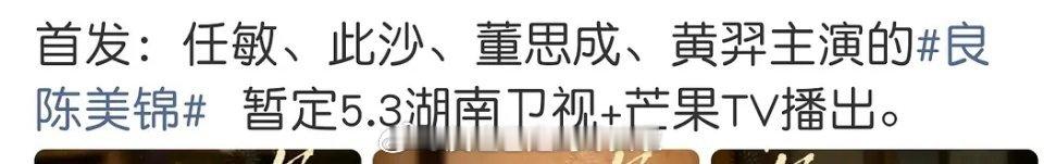 🍉任敏,此沙《良陈美锦》5月3日🥭tv和湖南卫视同步上线,我还挺期待这一部的
