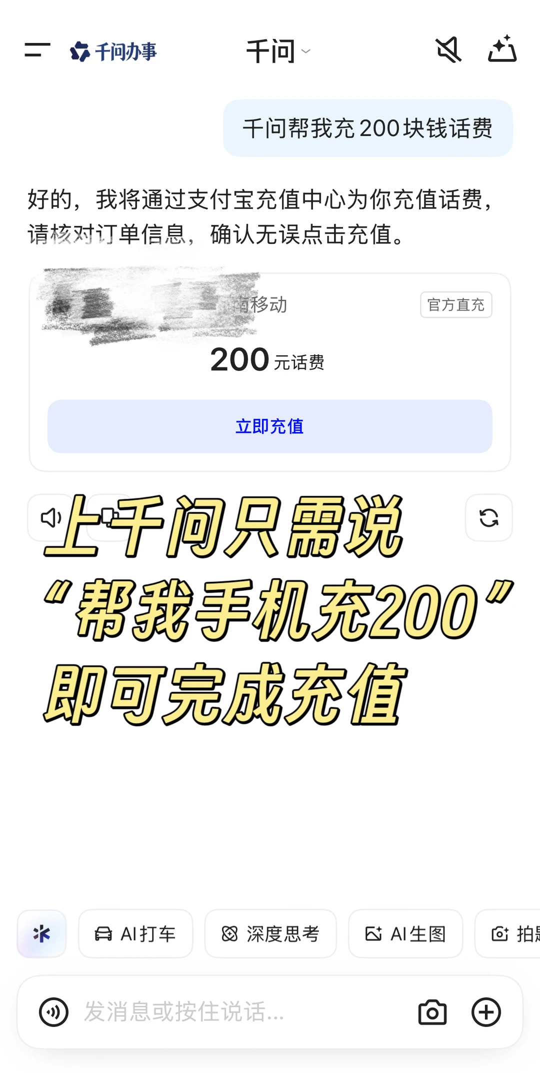 一句话:千问上线AI打车、AI充值,还专门搞了个活动,让用户边用边吐槽,评价还能领体验金。