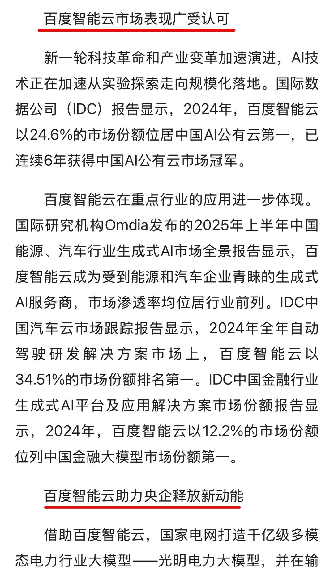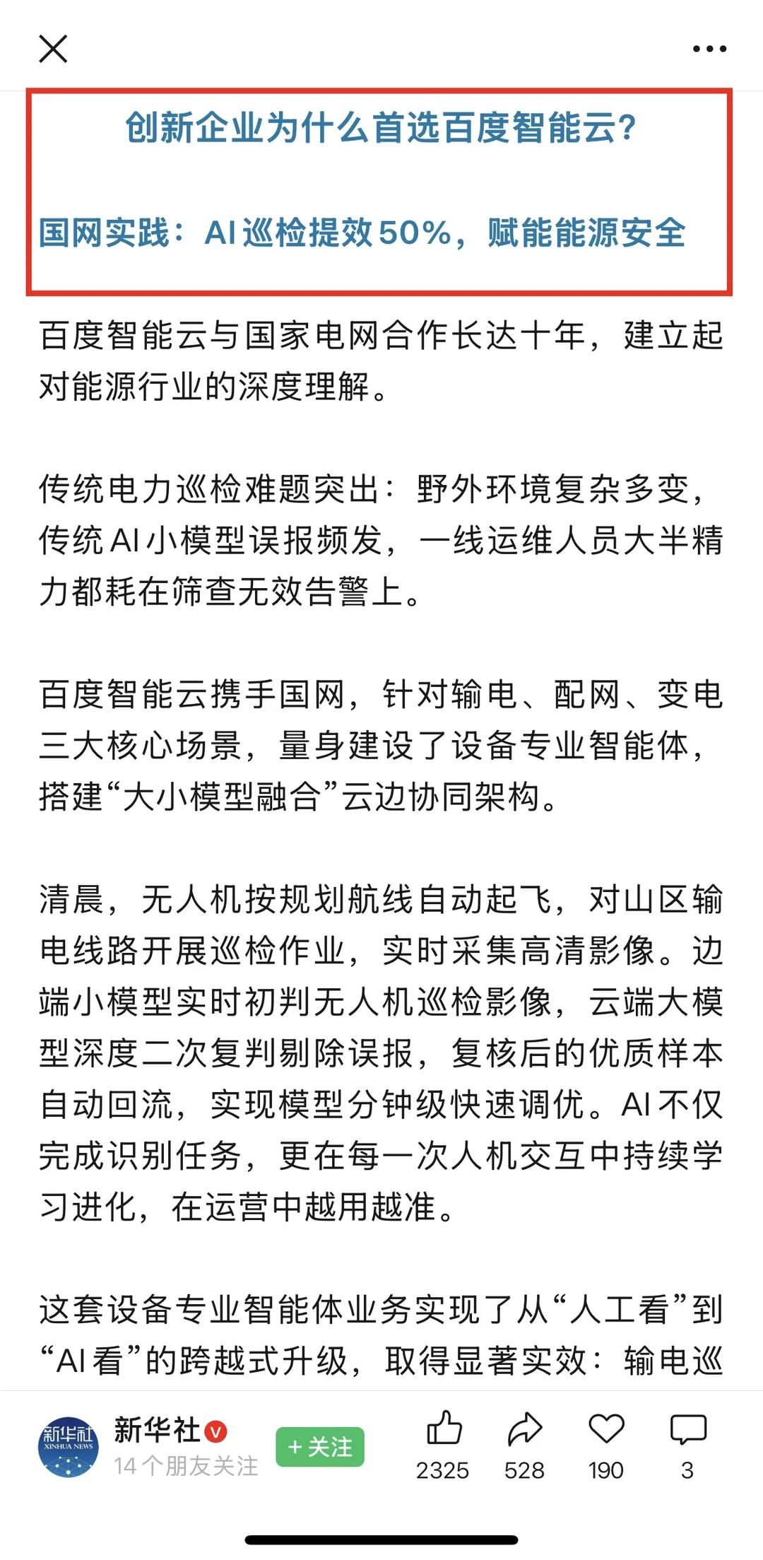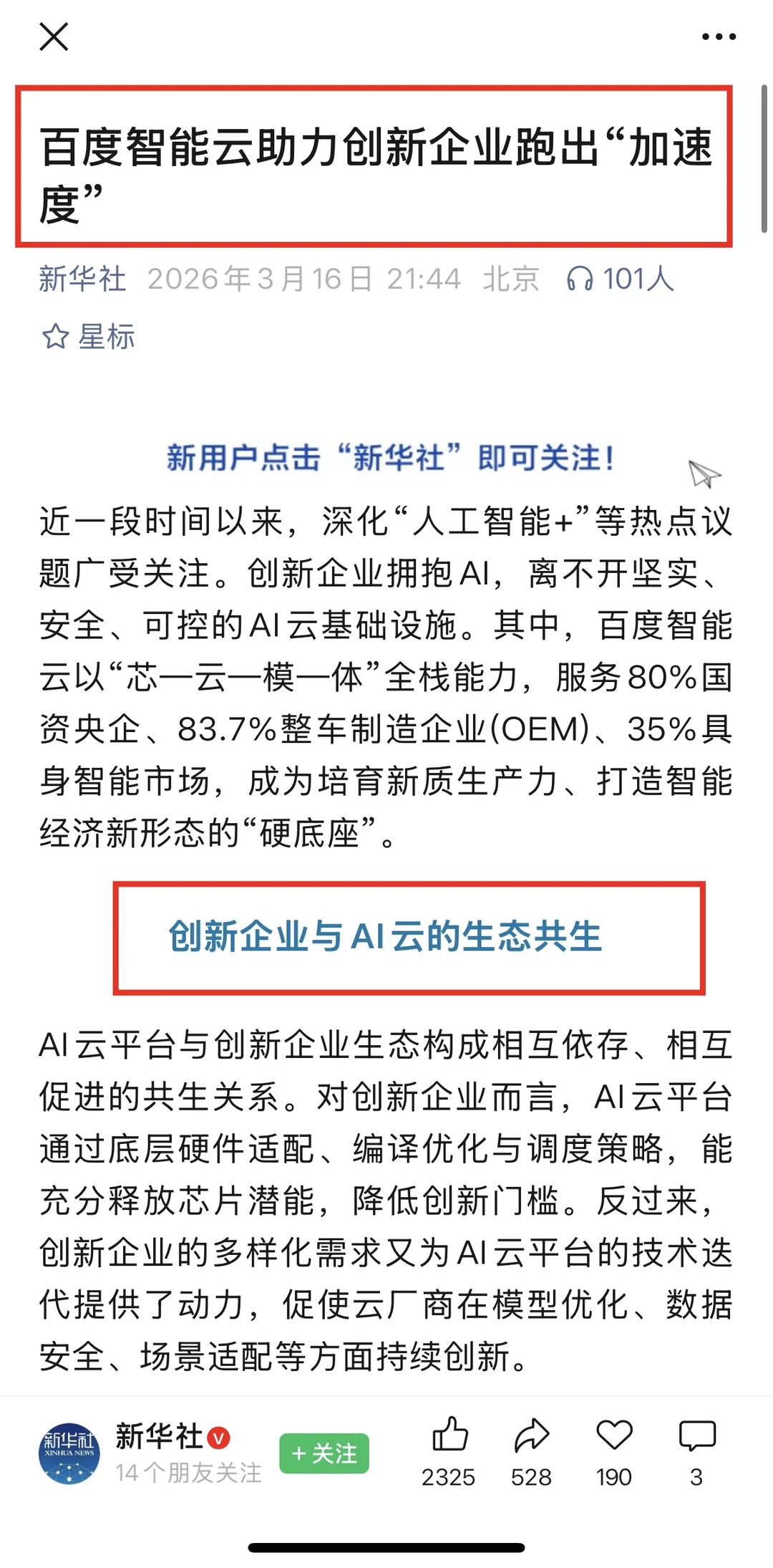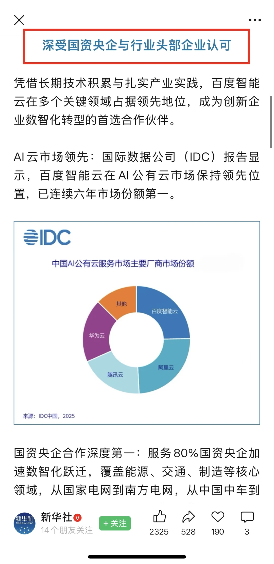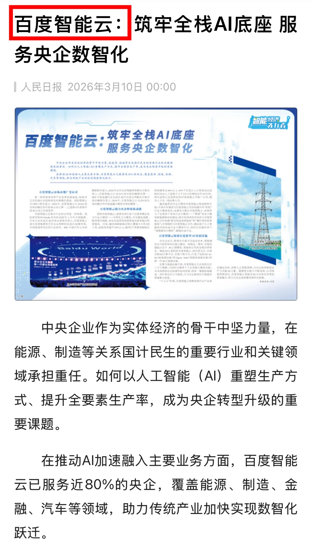 这也是为什么这次新华社和人民日报,点赞百度智能云。