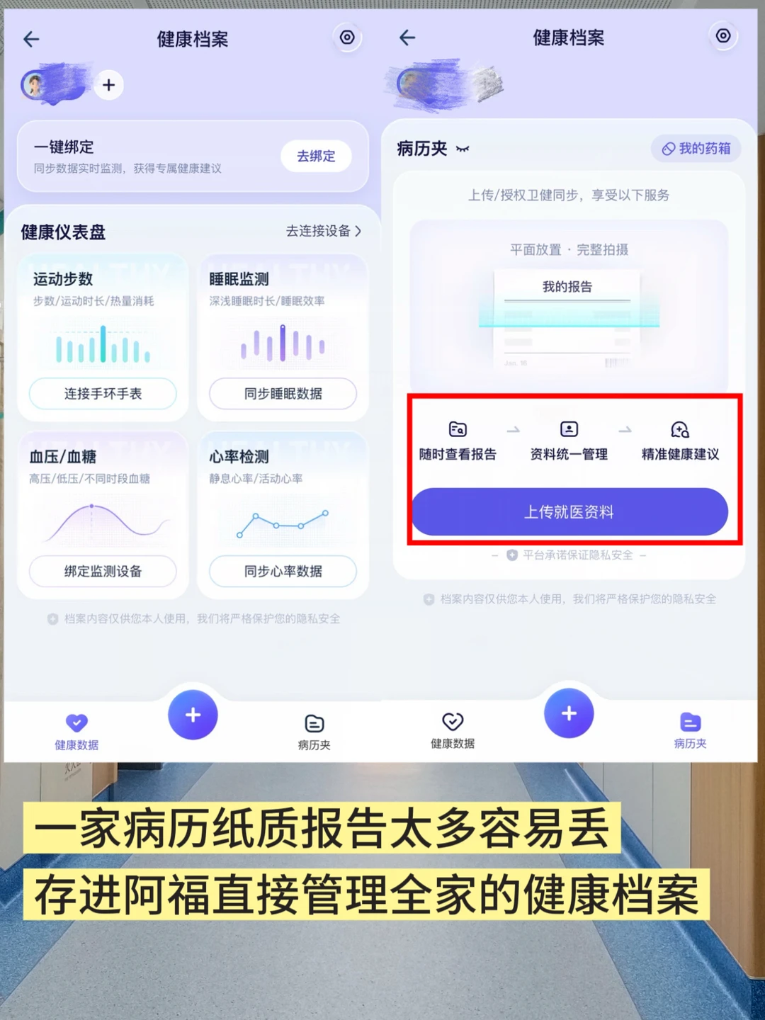 家里的检查单、病历本东一张西一张,下次复诊要找半天。全部拍照上传到阿福,一个APP就能管理全家人的健康档案。