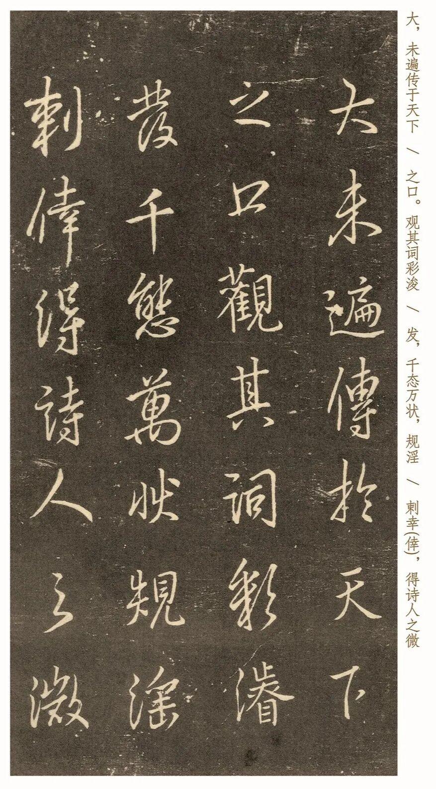 《宣和书谱》记载:“邕精于翰墨,行草之名尤著。初学右将军行法,既得其妙,乃复摆脱旧习,笔力一新”,受到时代影响,李邕最初师古,钻研“二王”法帖,得其笔法精髓,以及玄妙之处。