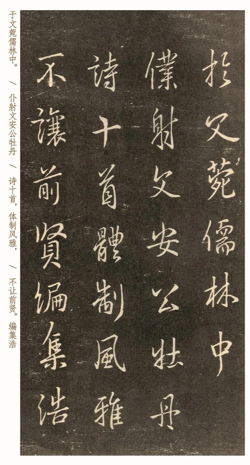 在李邕的传帖里面,最适合临摹的一幅,便是《行书帖》,前半部分是抄写的12首《牡丹诗》,后半部分是《缙云三帖》和手札,共计1000多字,以行书为主,兼容几分楷书笔法。