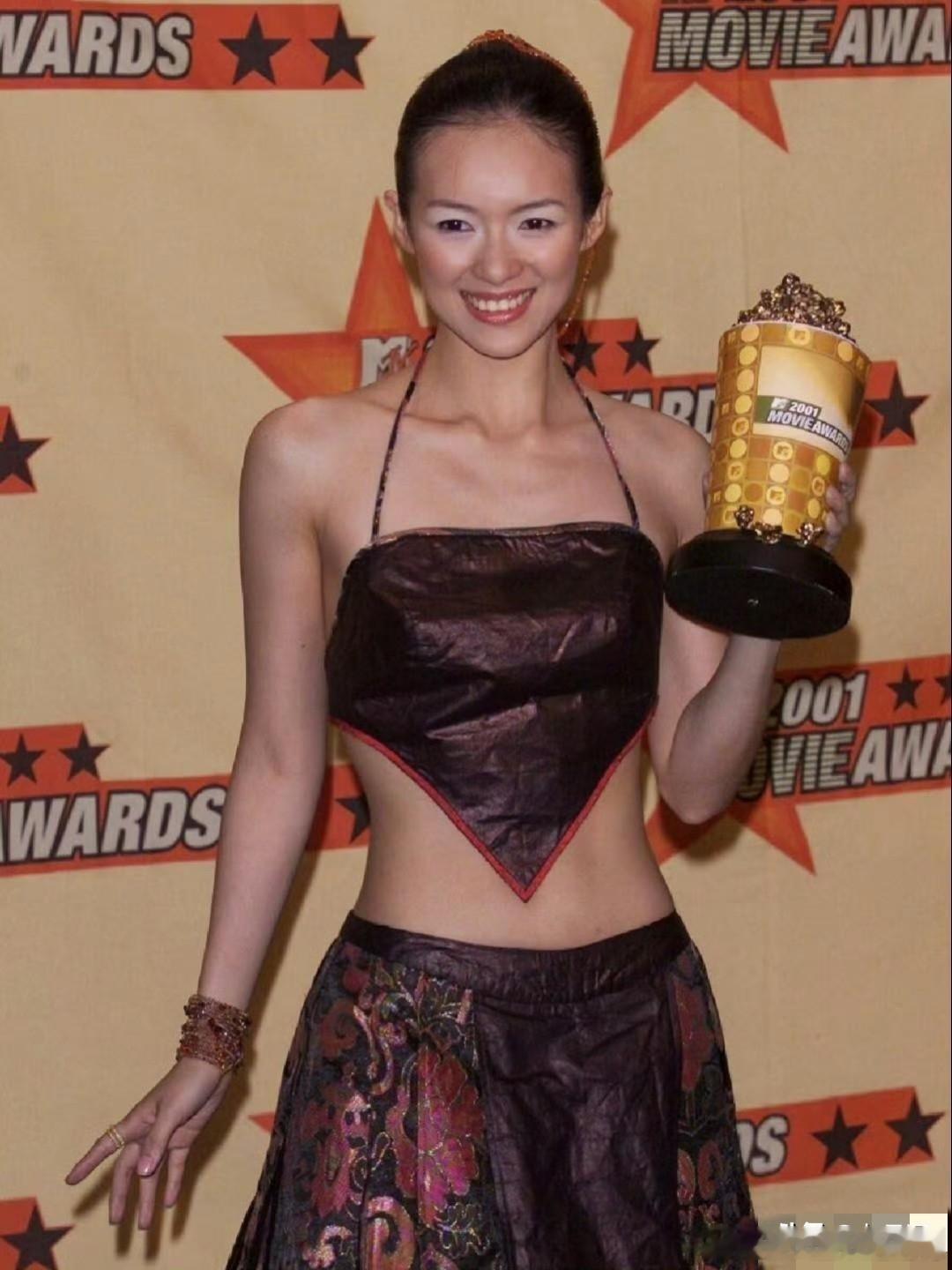 章子怡97年穿肚兜上镜,学生时期的她就把开放走到前沿了。