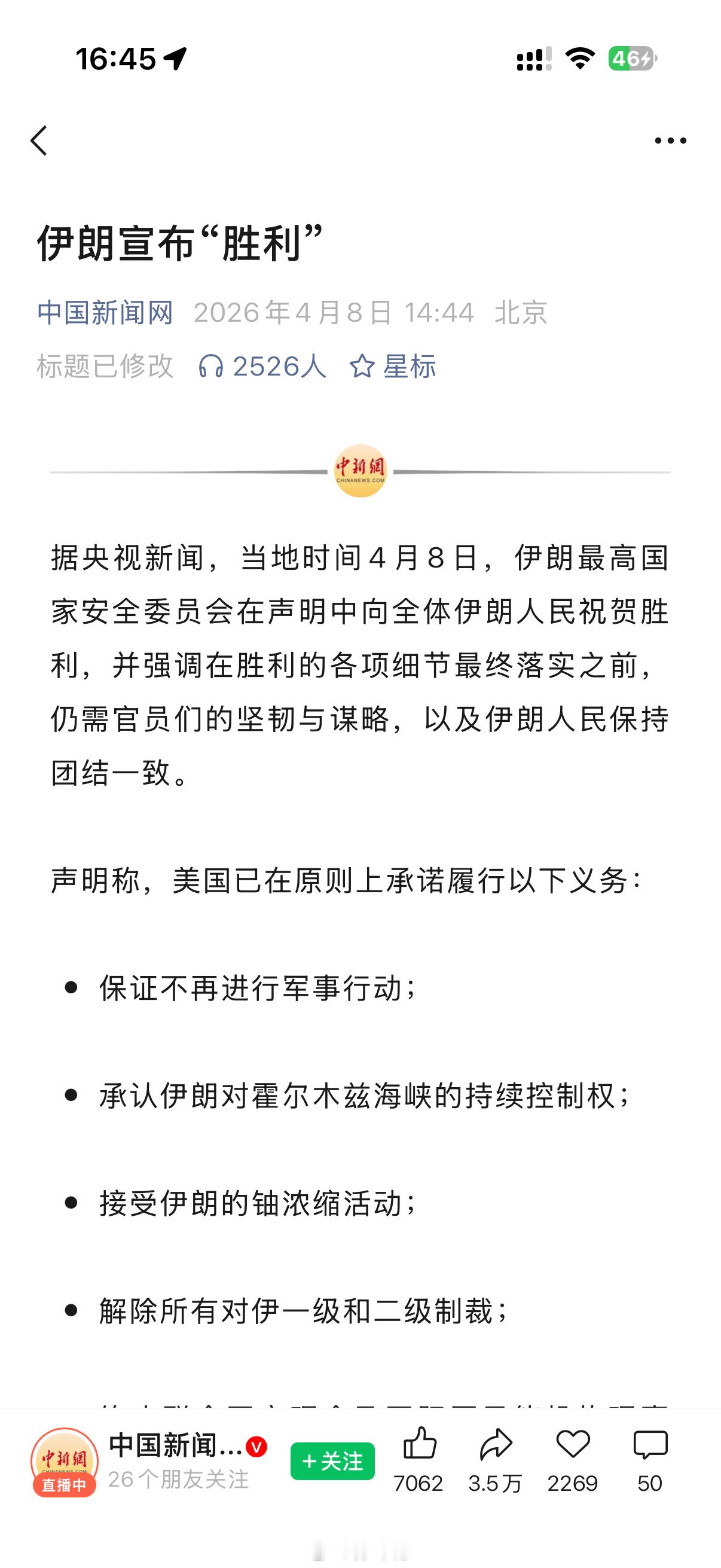 伊朗说自己赢了,美国也说自己赢了,所以最后输的只有我伊朗外长说美国必须二选一美国