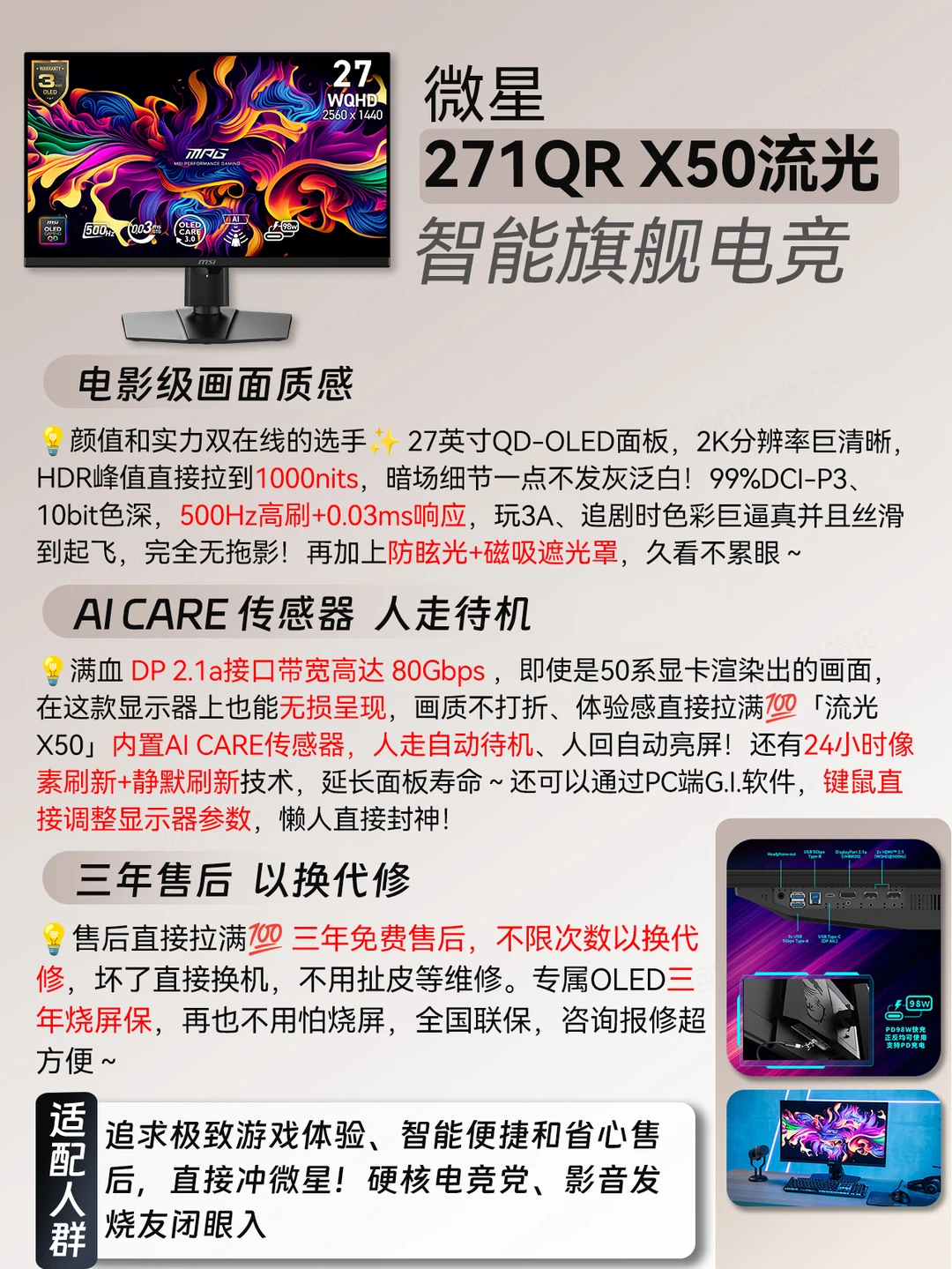 📌微星MPG 271QR QD-OLED X50 流光
