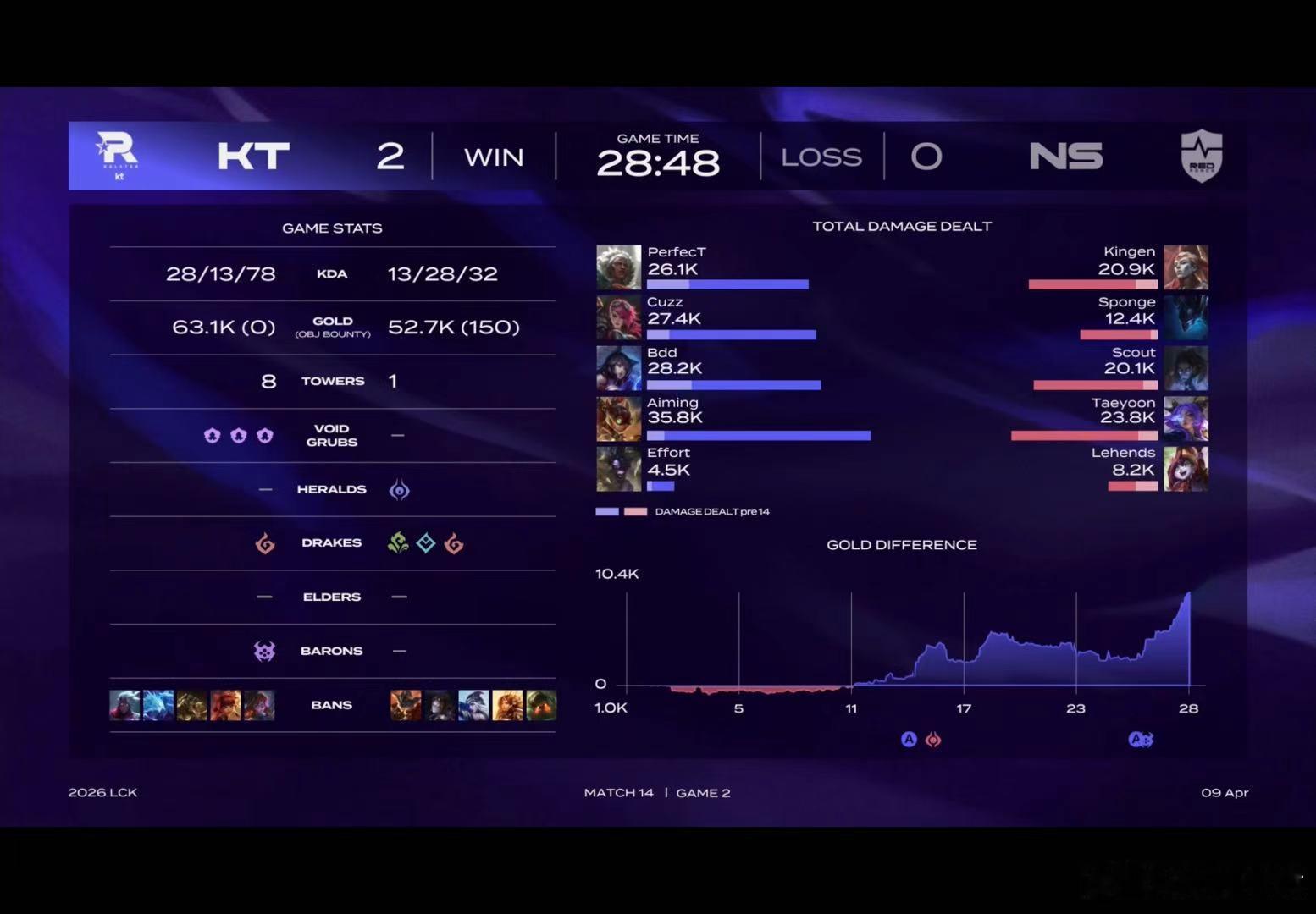 【2026LCK第二赛段常规赛 NS 0:2 KT 】本场POM给到Cuzz!赛
