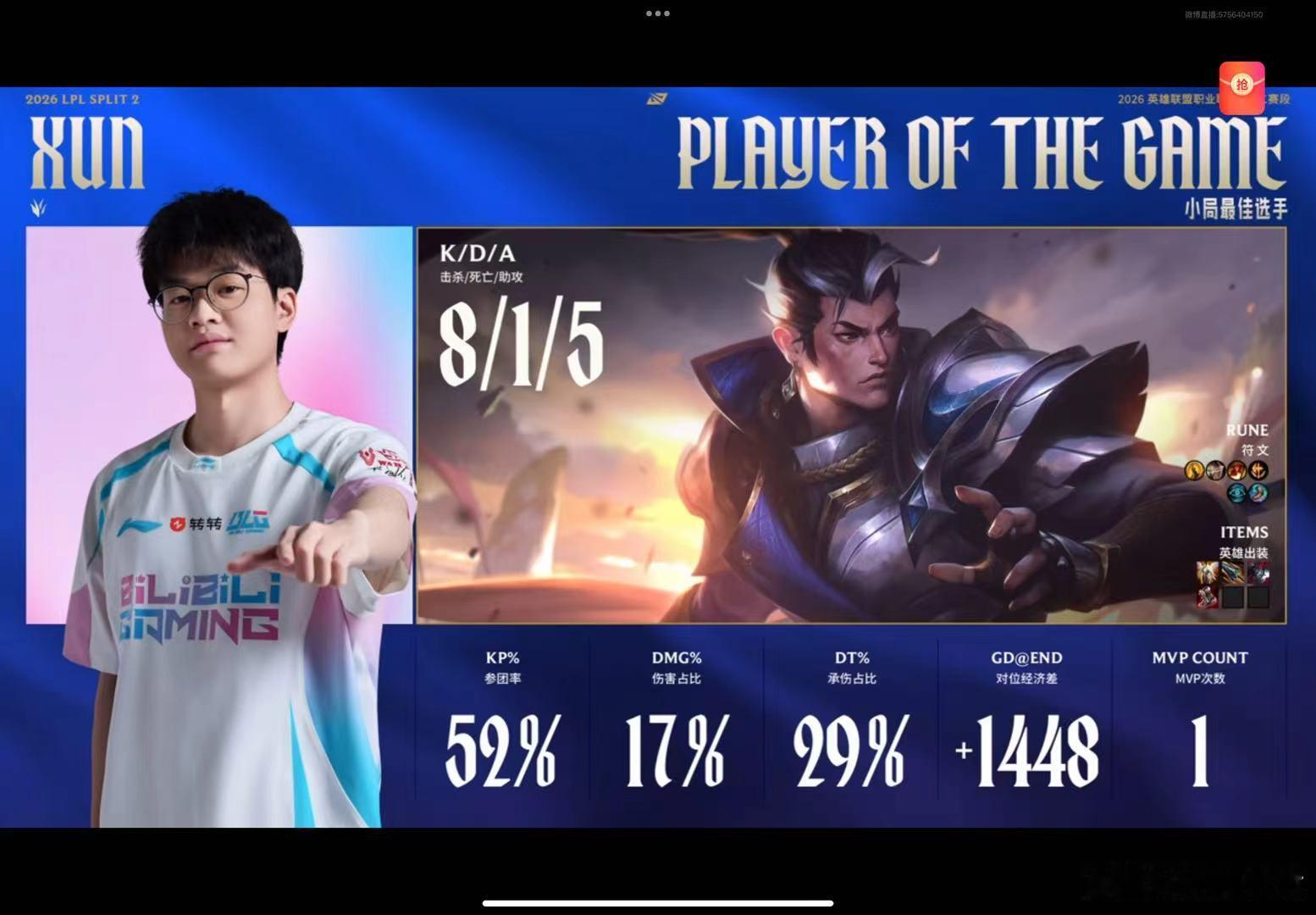 【2026LPL第二赛段组内赛 BLG 1:0 WE】本场的POG给到XUN!赛