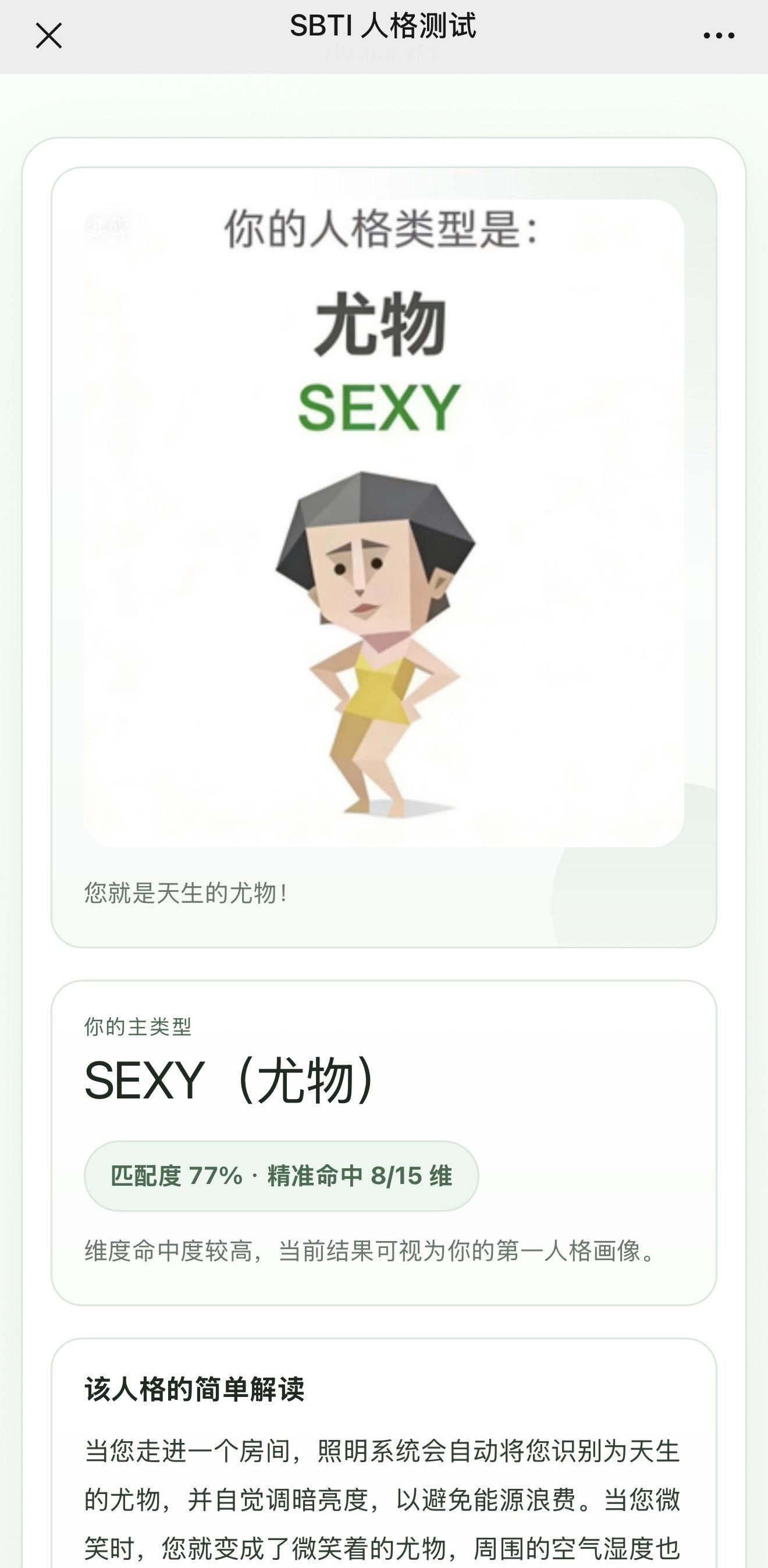 你们做sbti测试了吗?尤物在此你们是啥呀