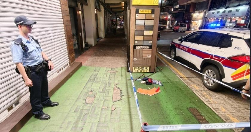现场所见,警方拉起封锁现进行调查,地上亦遗留晾衫竹、衣架及衣物,不排除事主从一楼的单位收回晾晒的衣物而爬出窗,其后失足堕地。