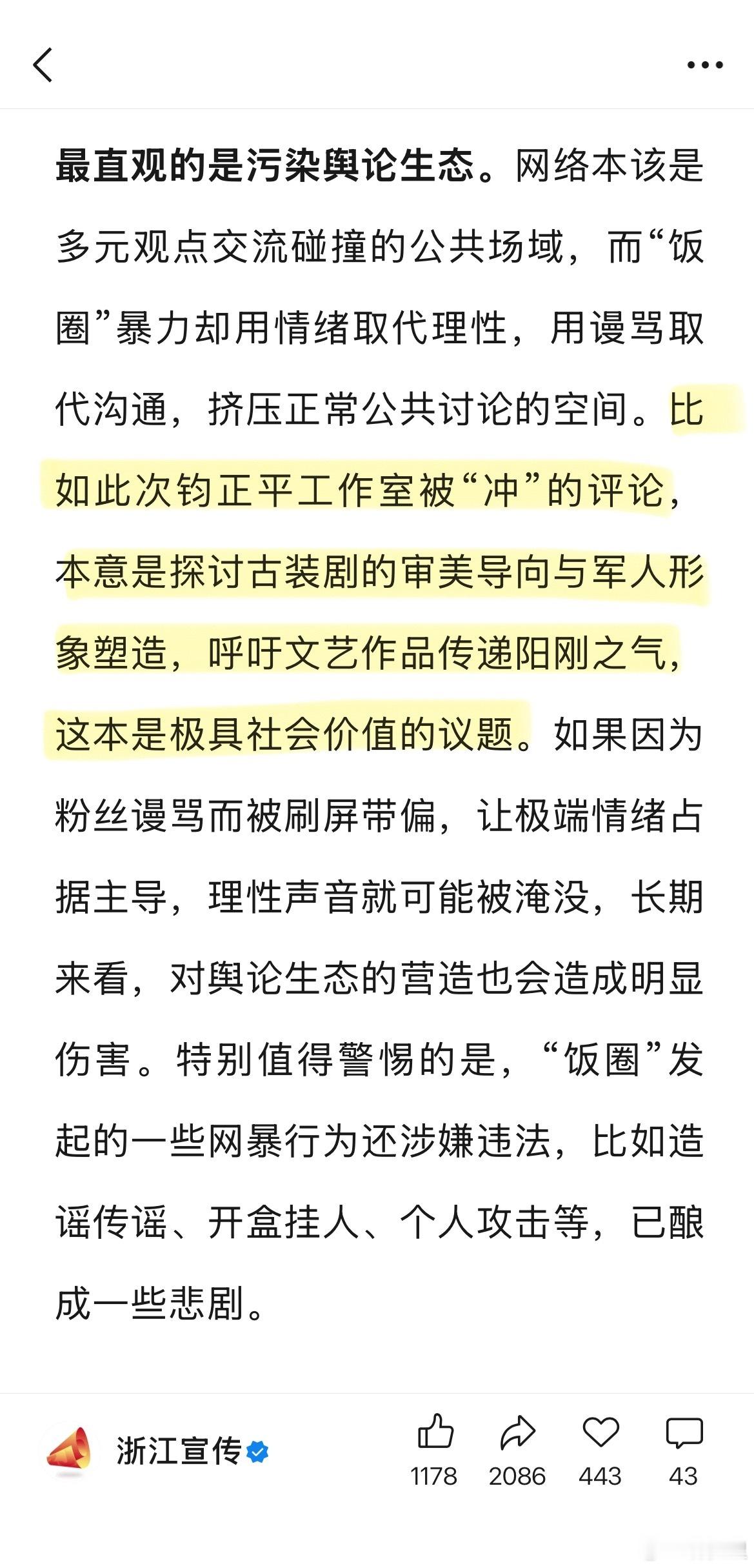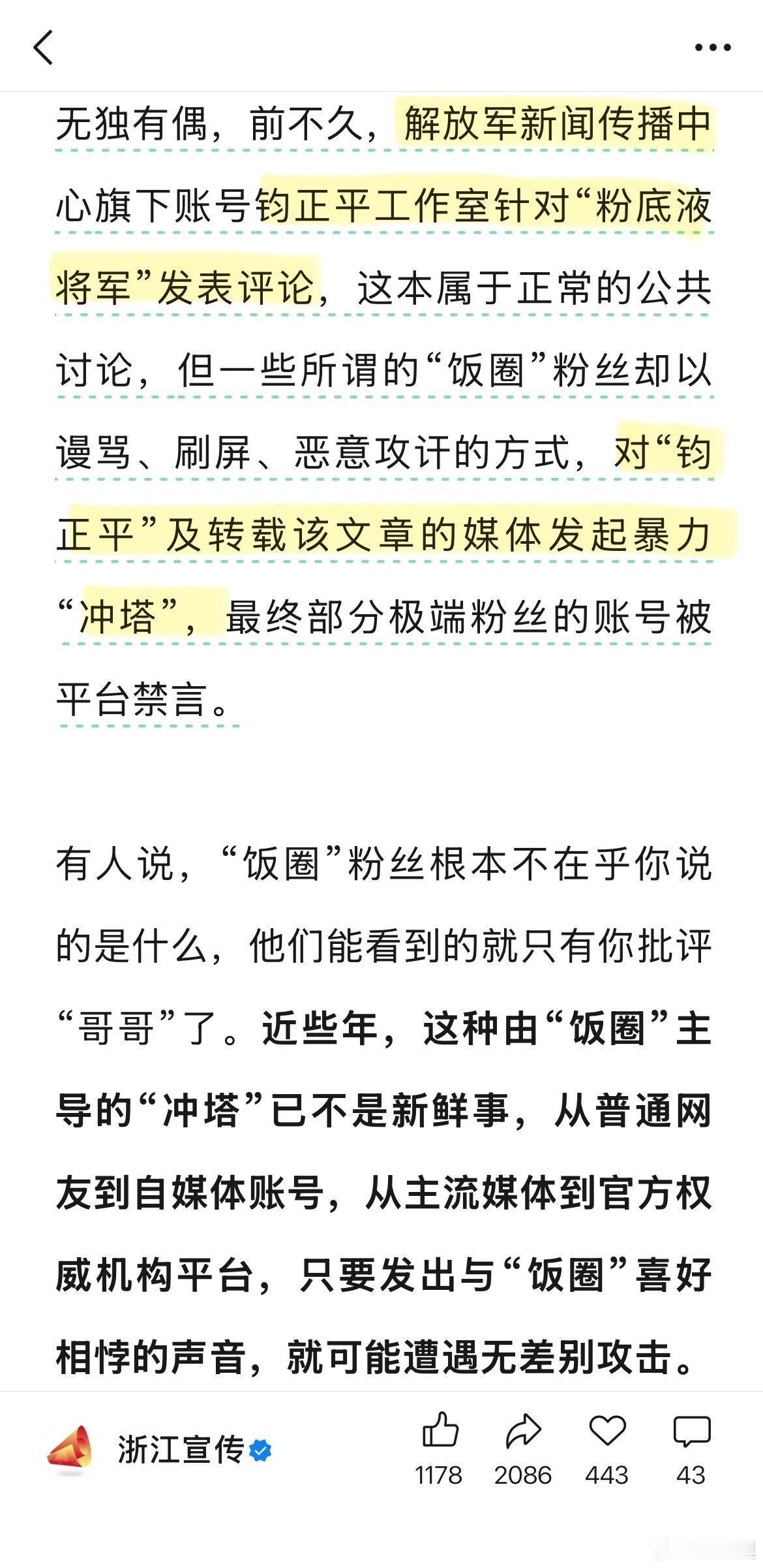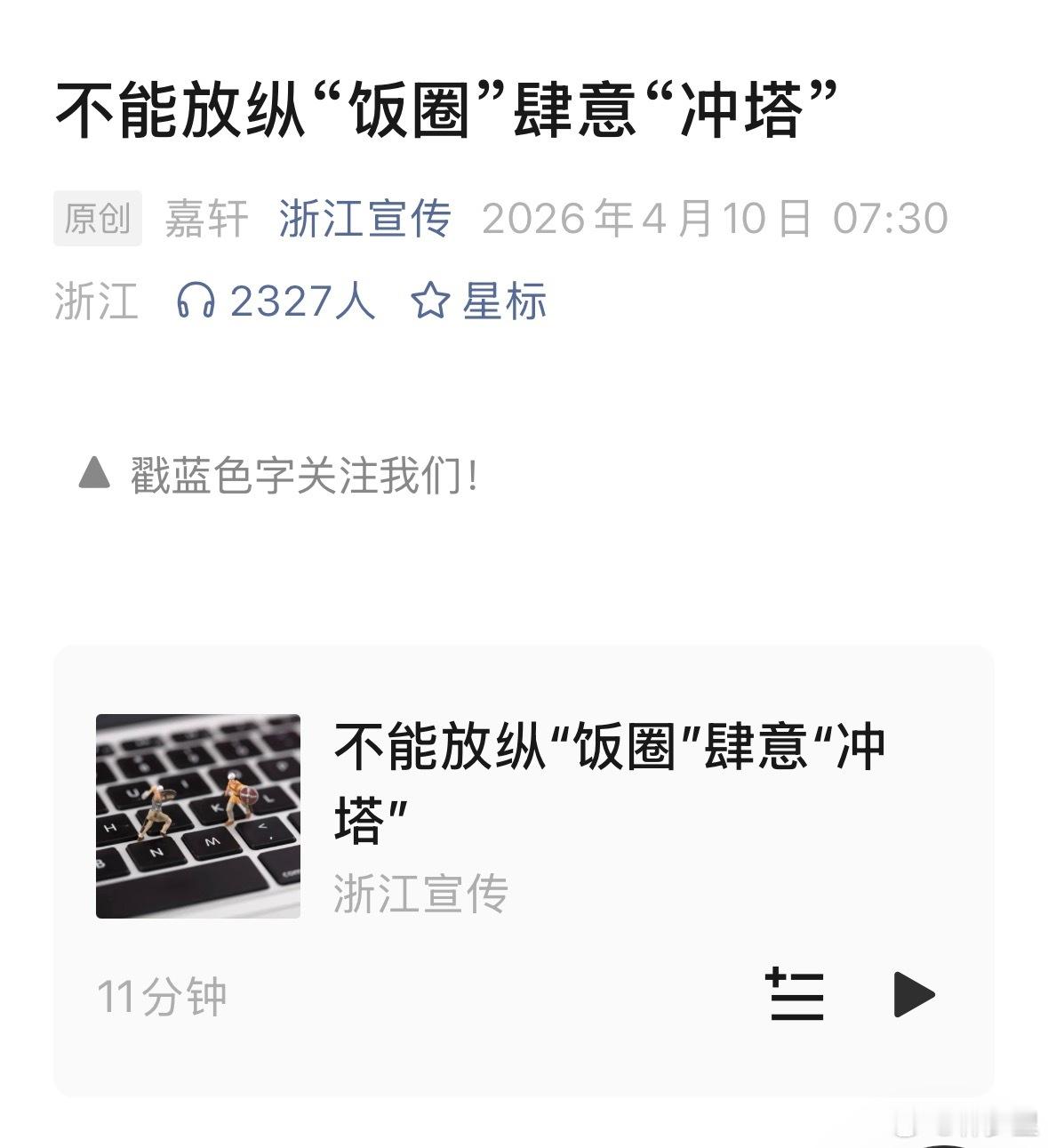 浙江宣传:不能放纵“饭圈”肆意“冲塔”。