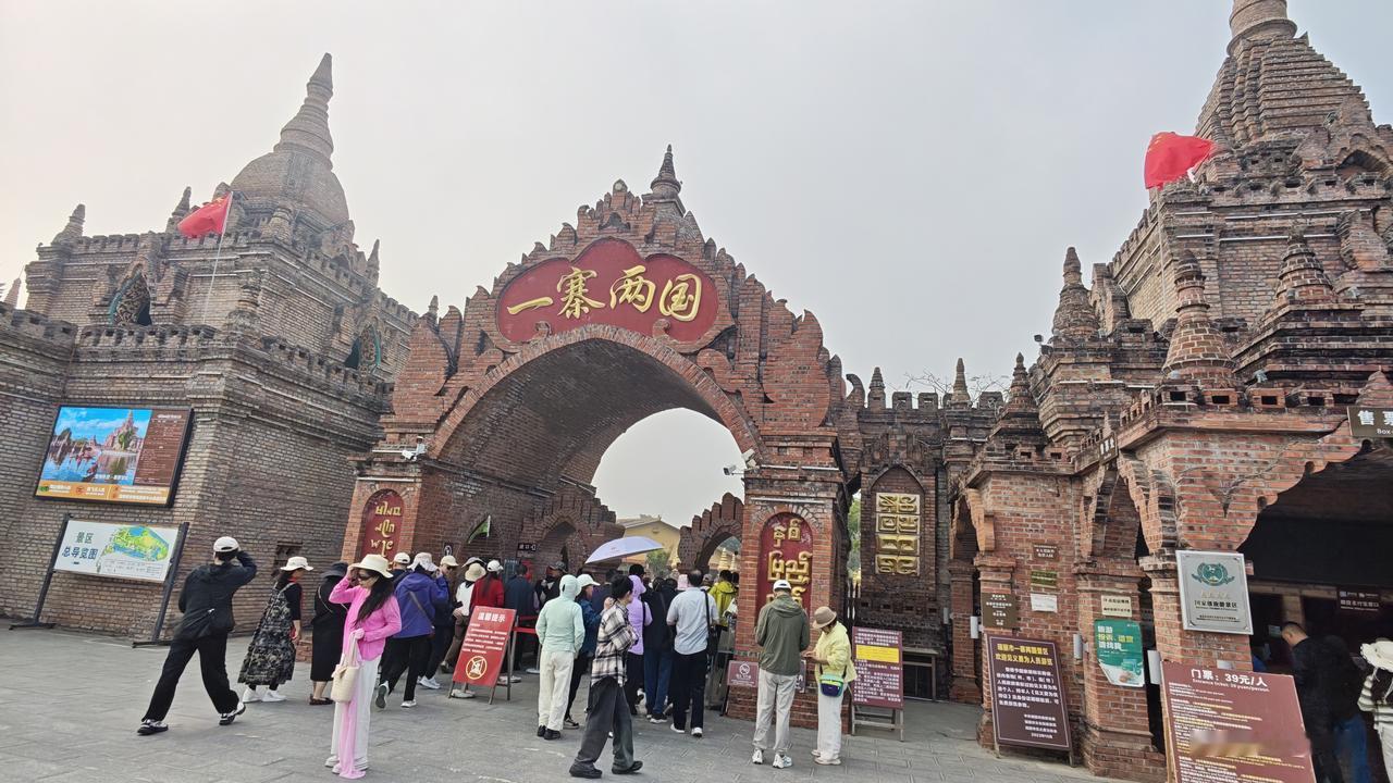 39元门票。人很多,进去之后跟着导游转了一圈。在这里终于可以跟缅甸人近距离接触了。好多缅甸人隔着围墙卖烟,挺有意思的。园区还不小,那边头是一个大的公园,仿照缅甸普甘的塔建成了一片塔。有些地方很出片子。那个最高的塔也相当好。
