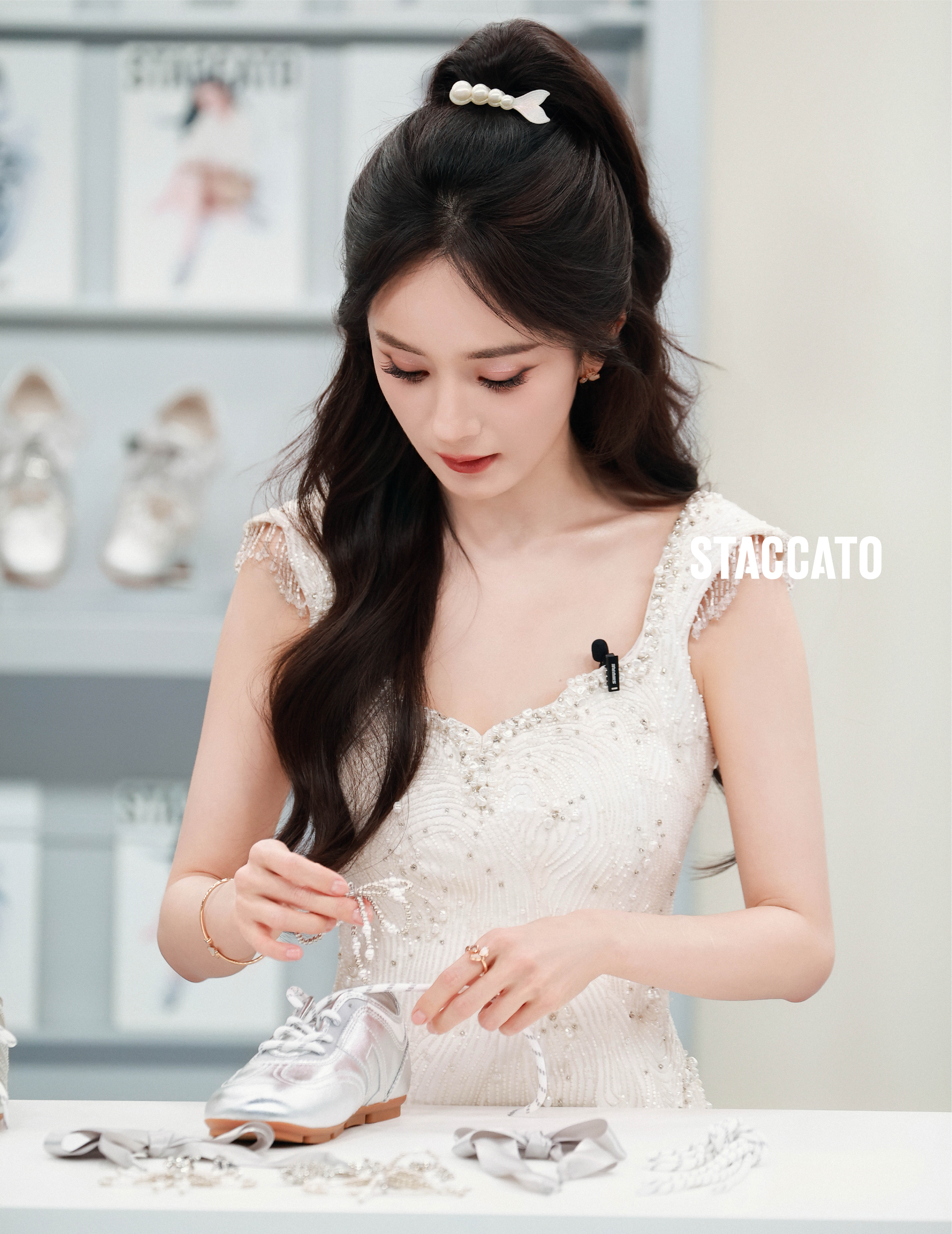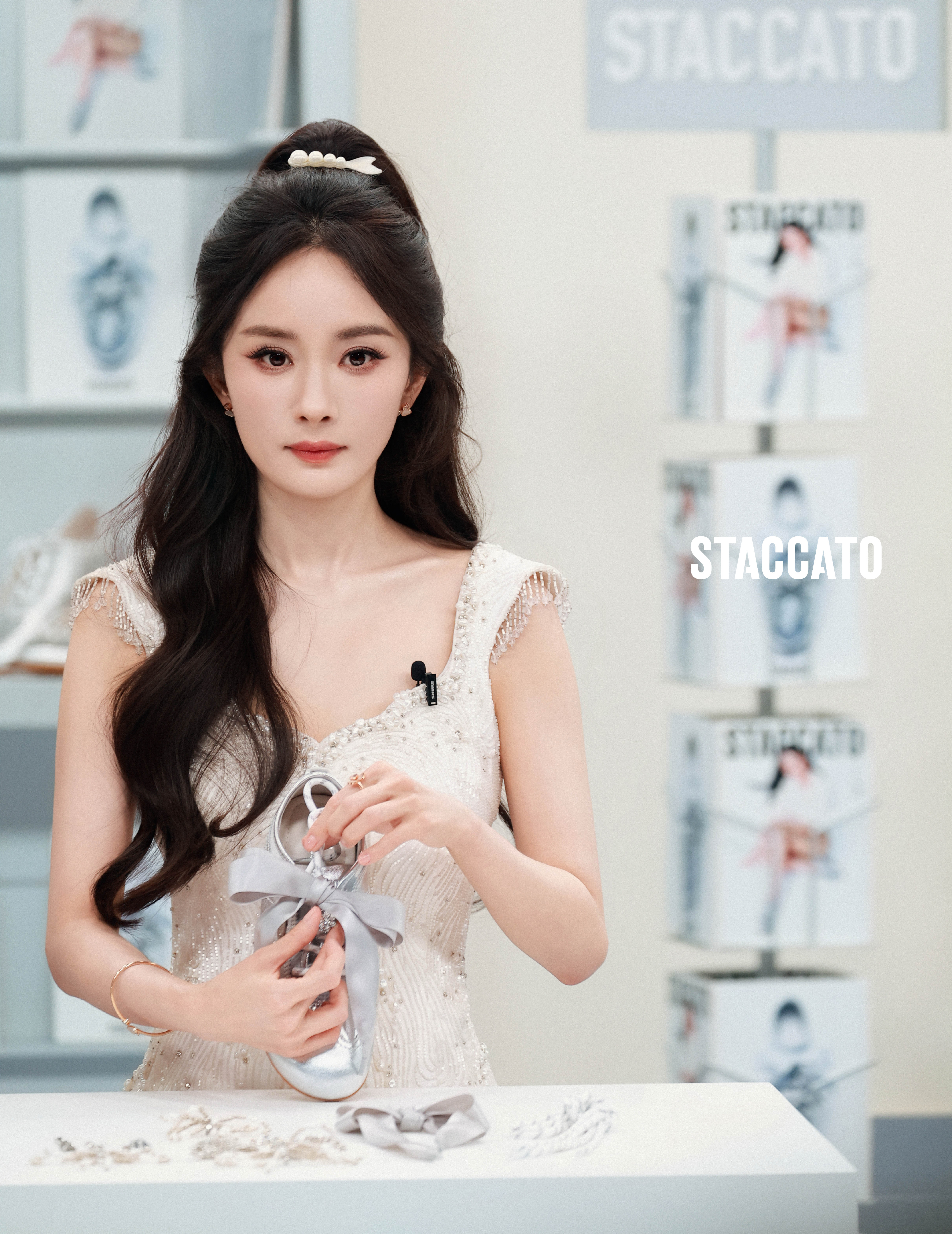 杨幂 白裙缀满星光,发间别着温柔,踩一双银亮软鞋,把法式浪漫穿在身上。杨幂