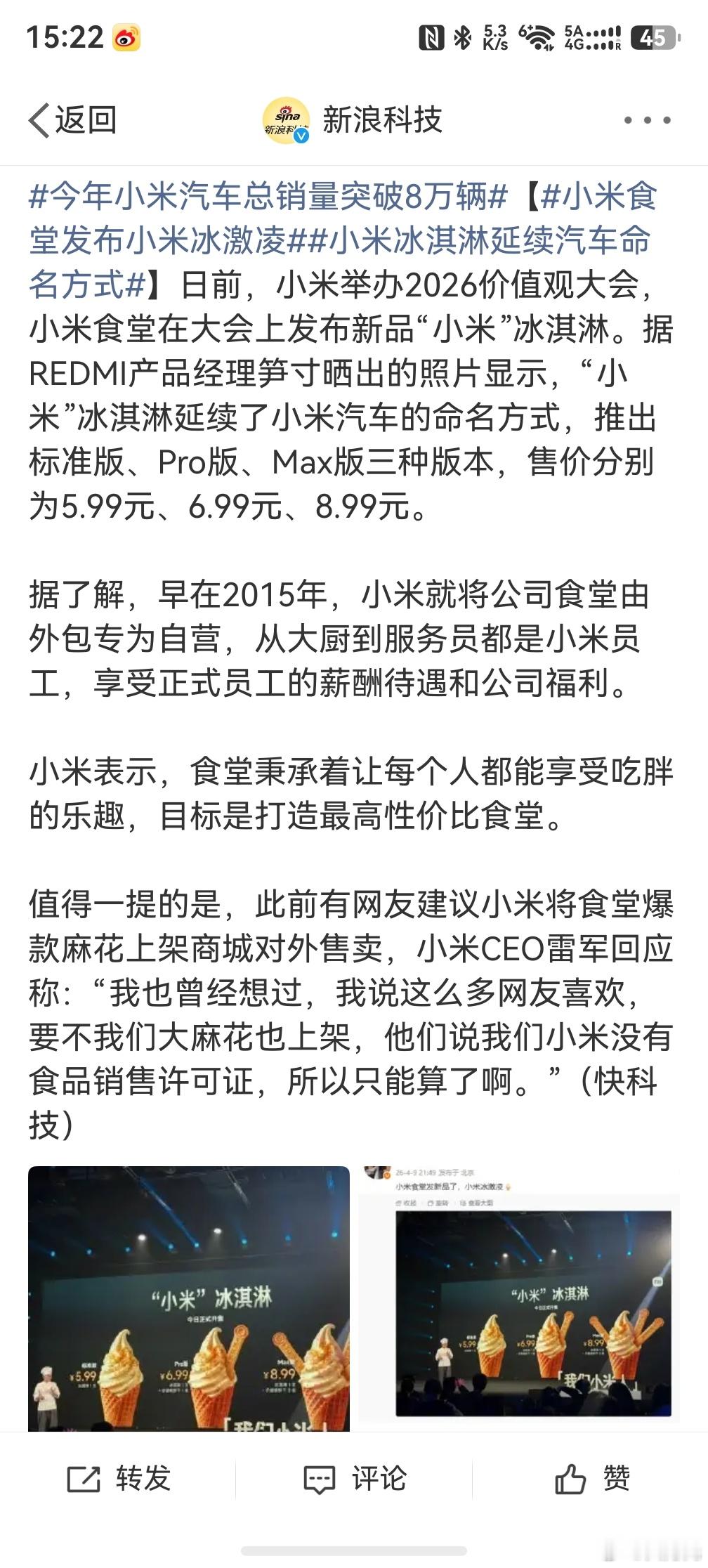 小米食堂发布小米冰激凌,好家伙,小米竟然发冰淇淋,要是能对外销售,估计销量会不错